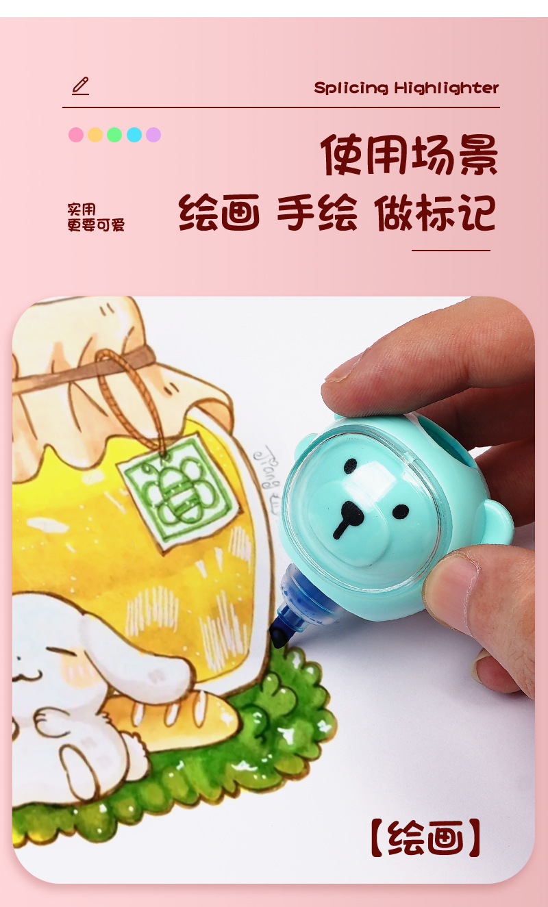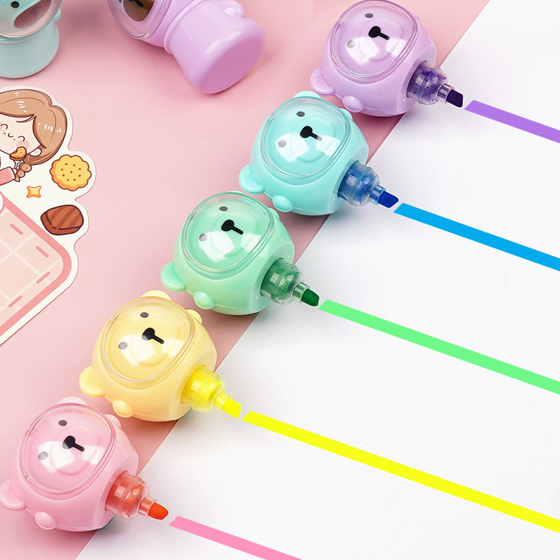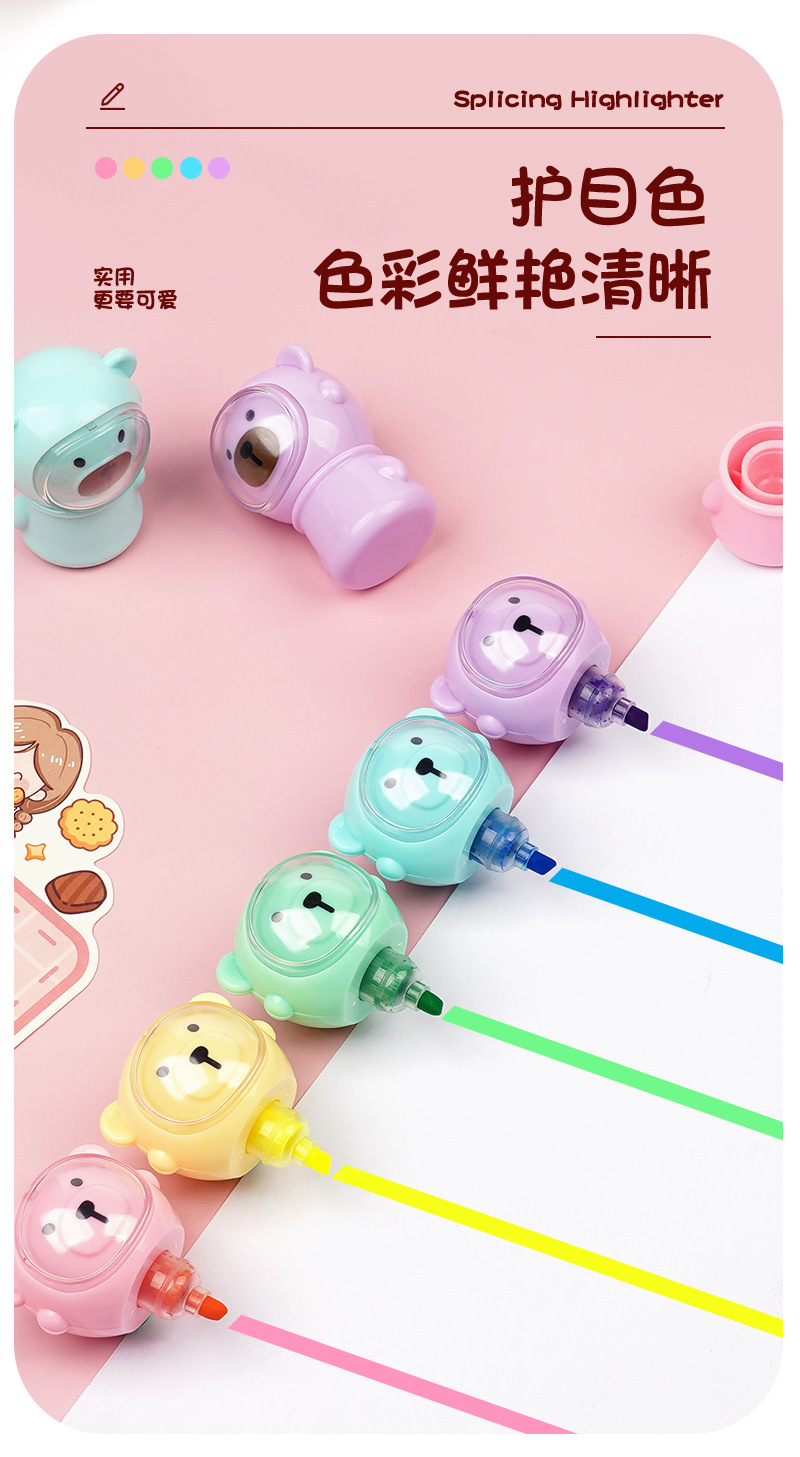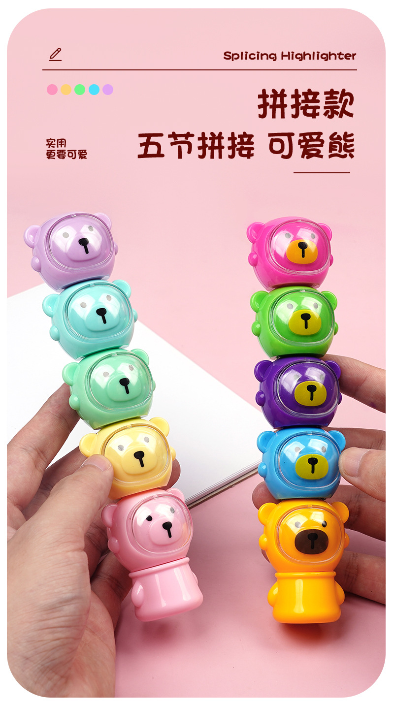 合慕H-1173A卡通太空熊荧光笔 现货批发可拼接学生做笔记手账彩笔 English | 投诉
