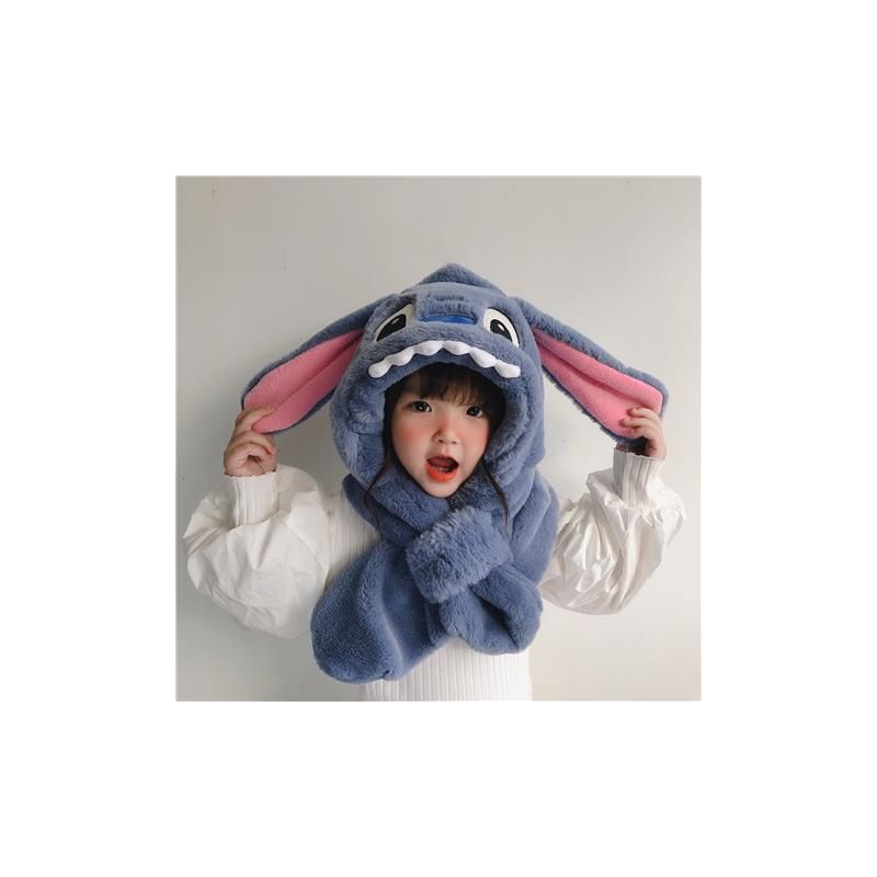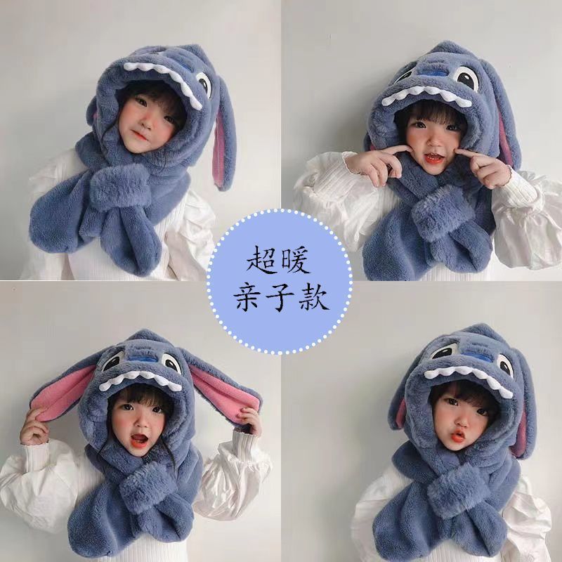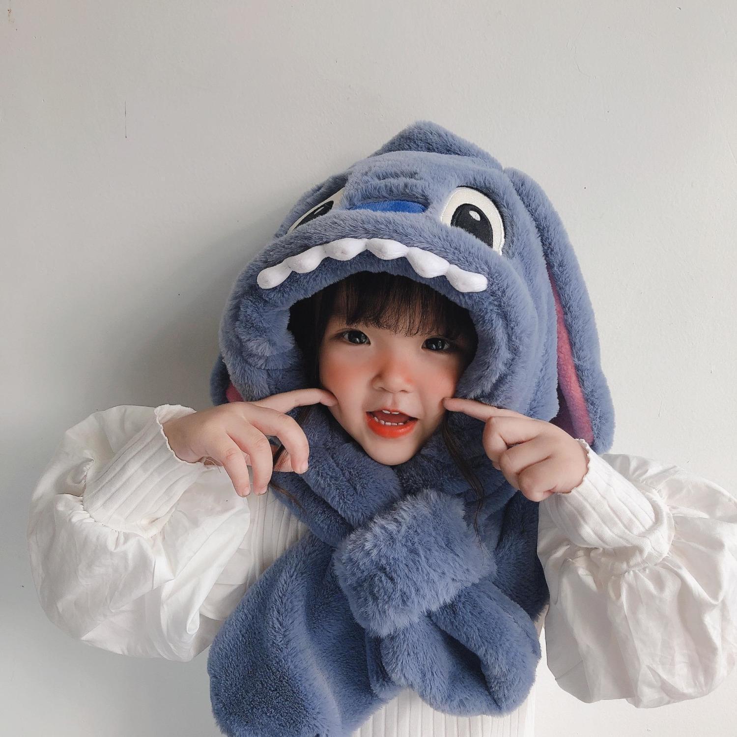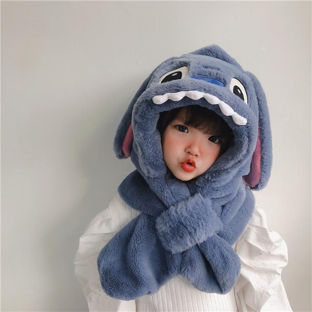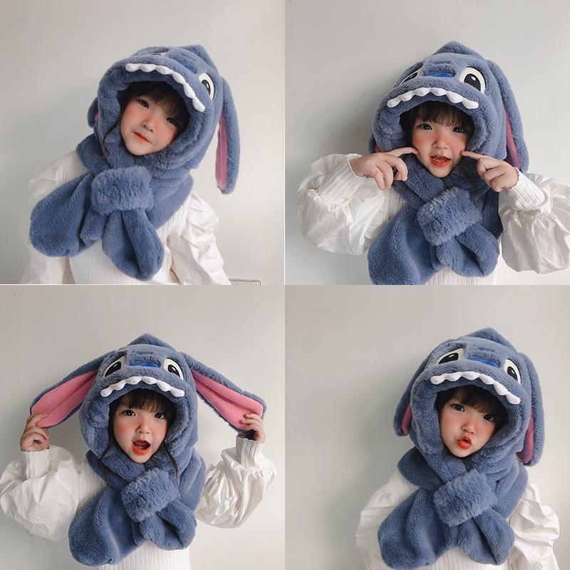 儿童冬季帽子围巾围脖一体加厚保暖史迪仔毛绒两件套护耳宝宝防寒