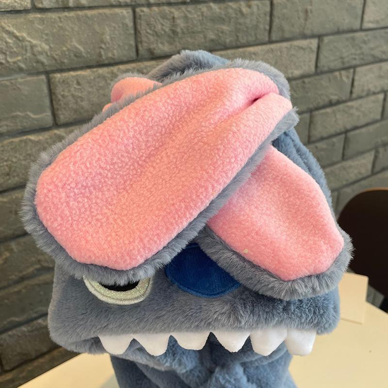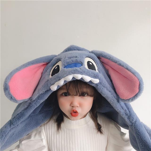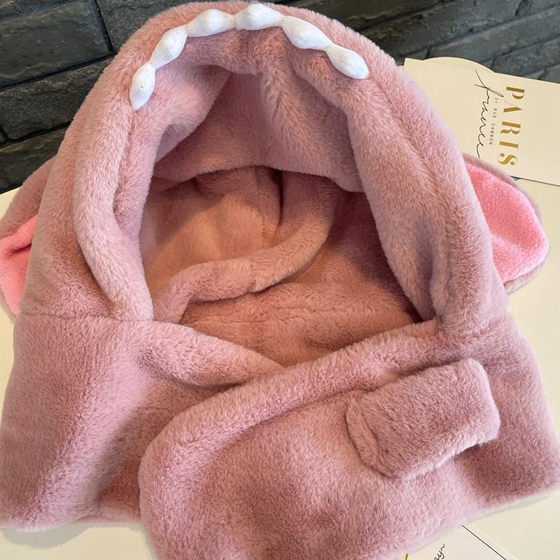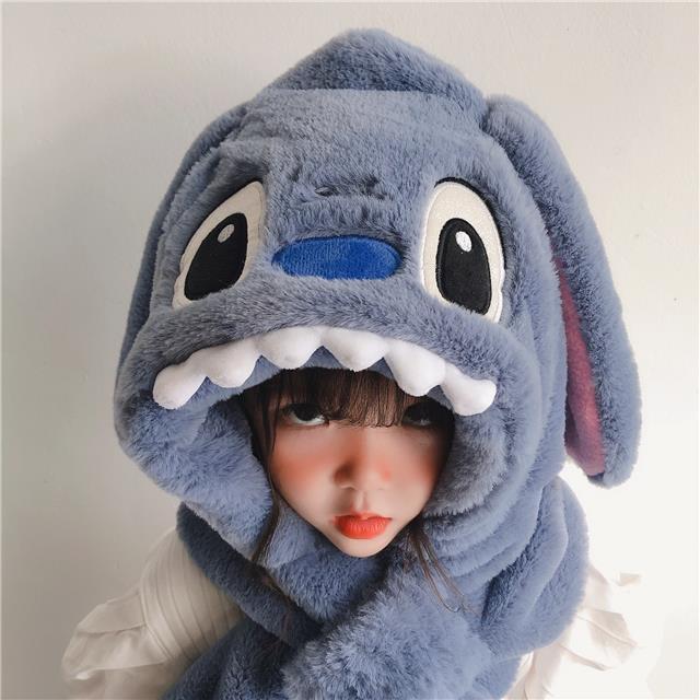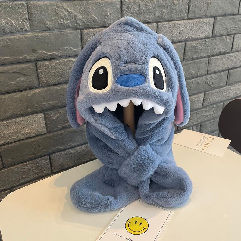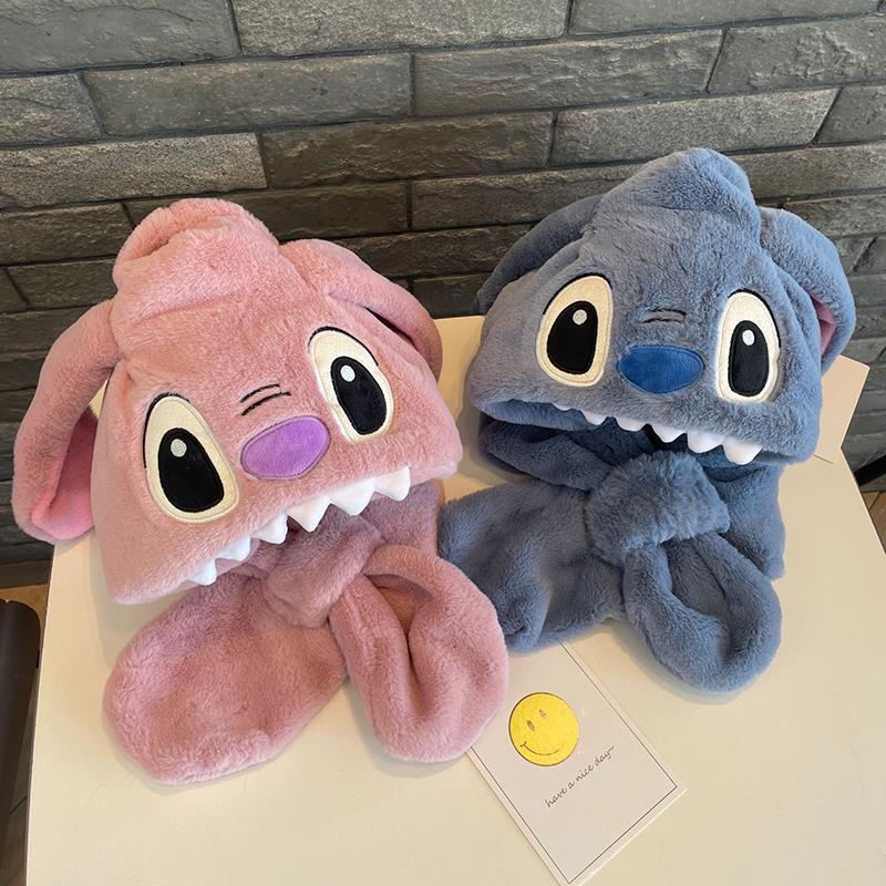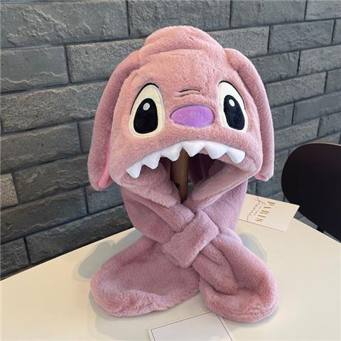 儿童冬季帽子围巾围脖一体加厚保暖史迪仔毛绒两件套护耳宝宝防寒