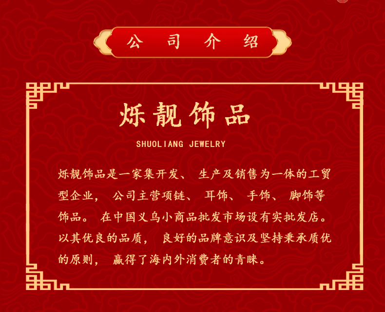 首页 > 市场 > 义乌国际商贸城一区东 > 2楼 > 饰品 > 鑫饰界越南沙金饰品工厂店