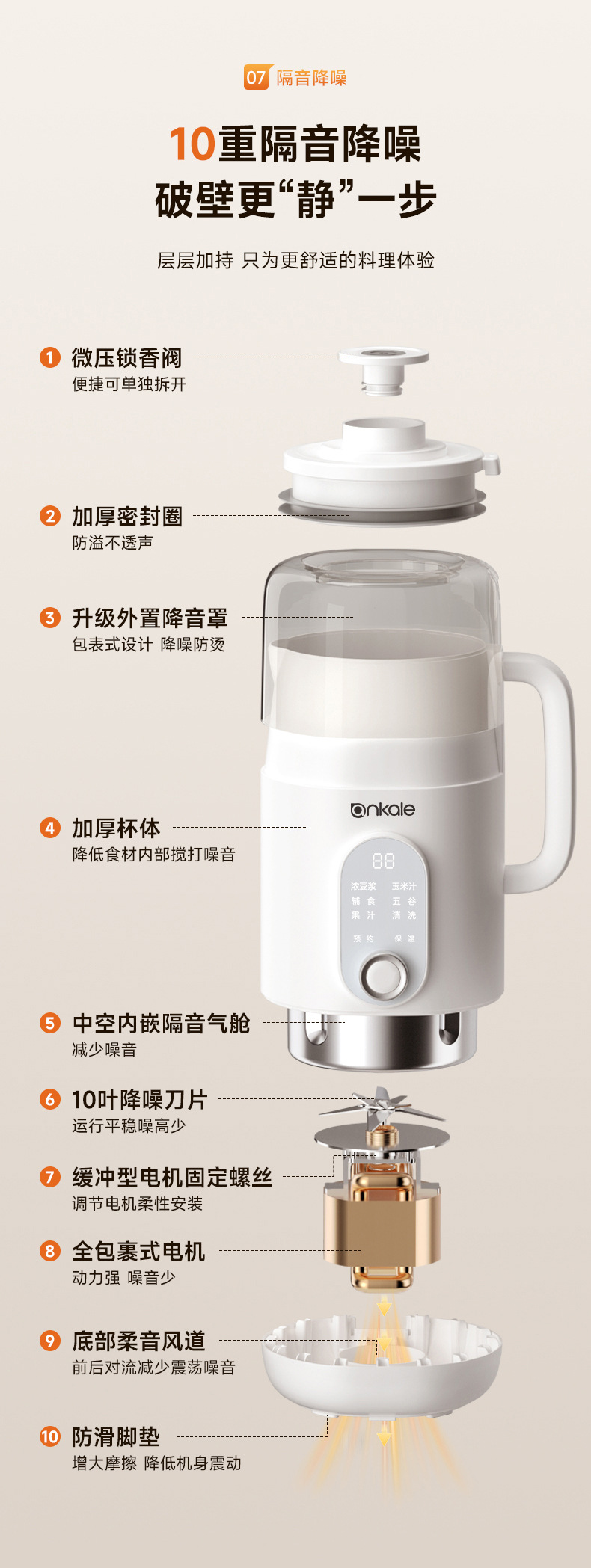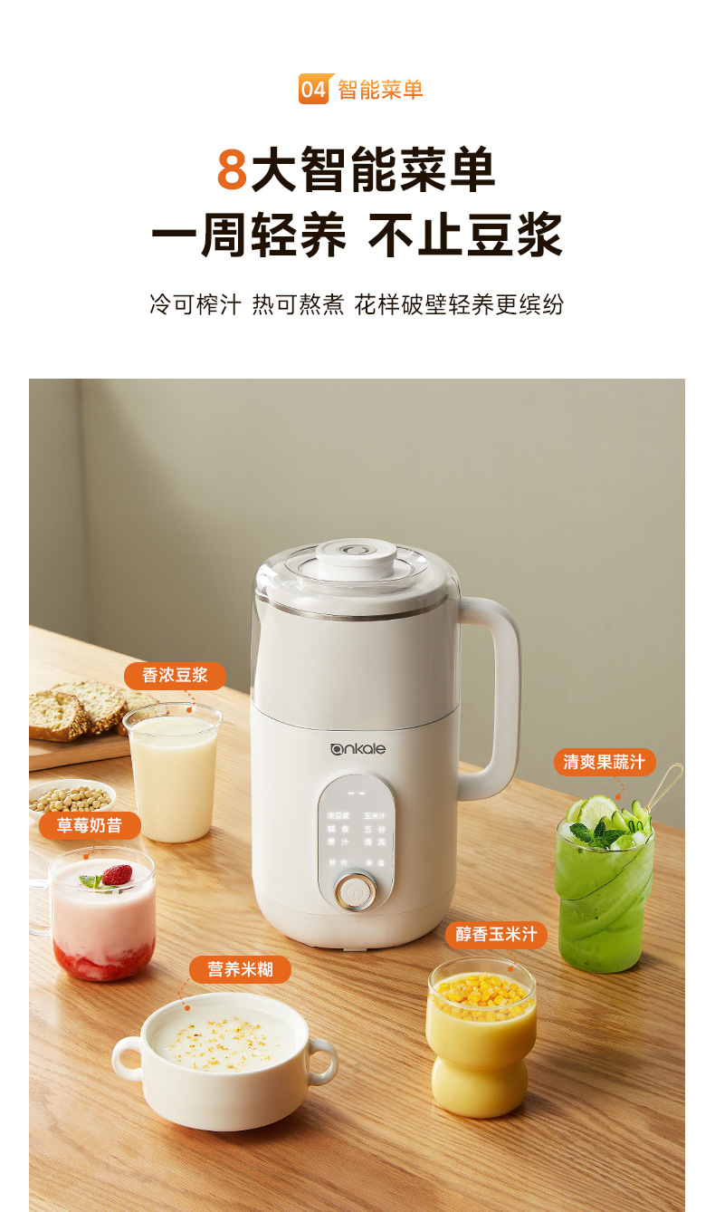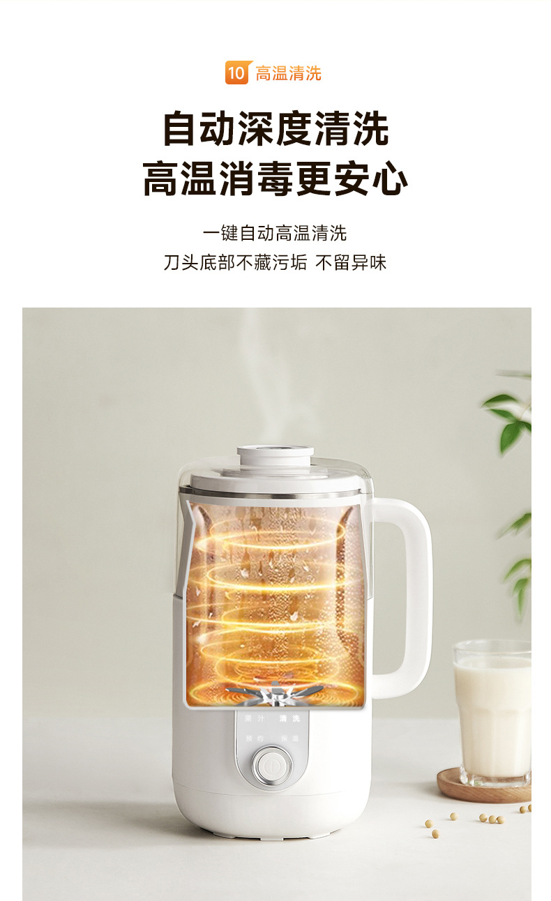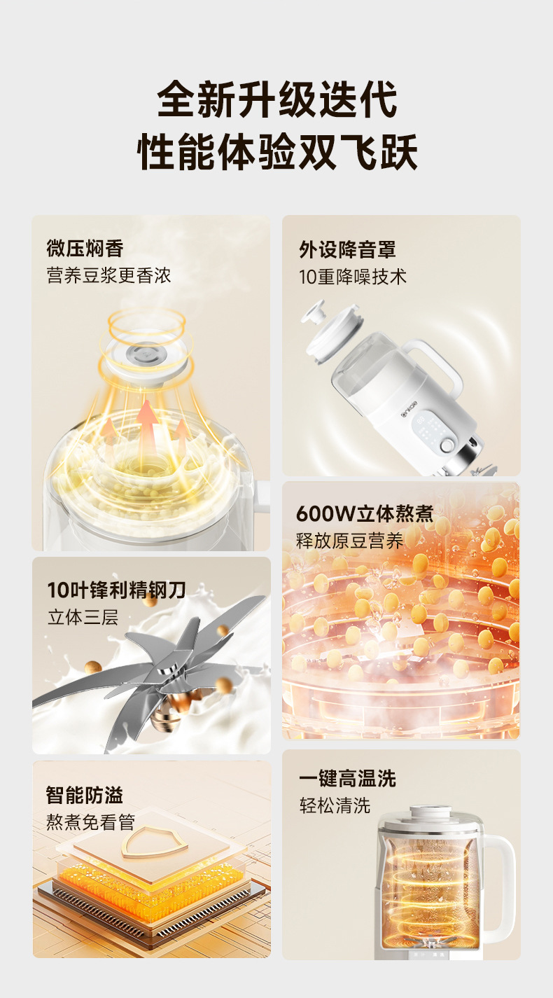 微压豆浆机家用全自动静音外罩多功能料理免煮免过滤1L破壁豆浆机