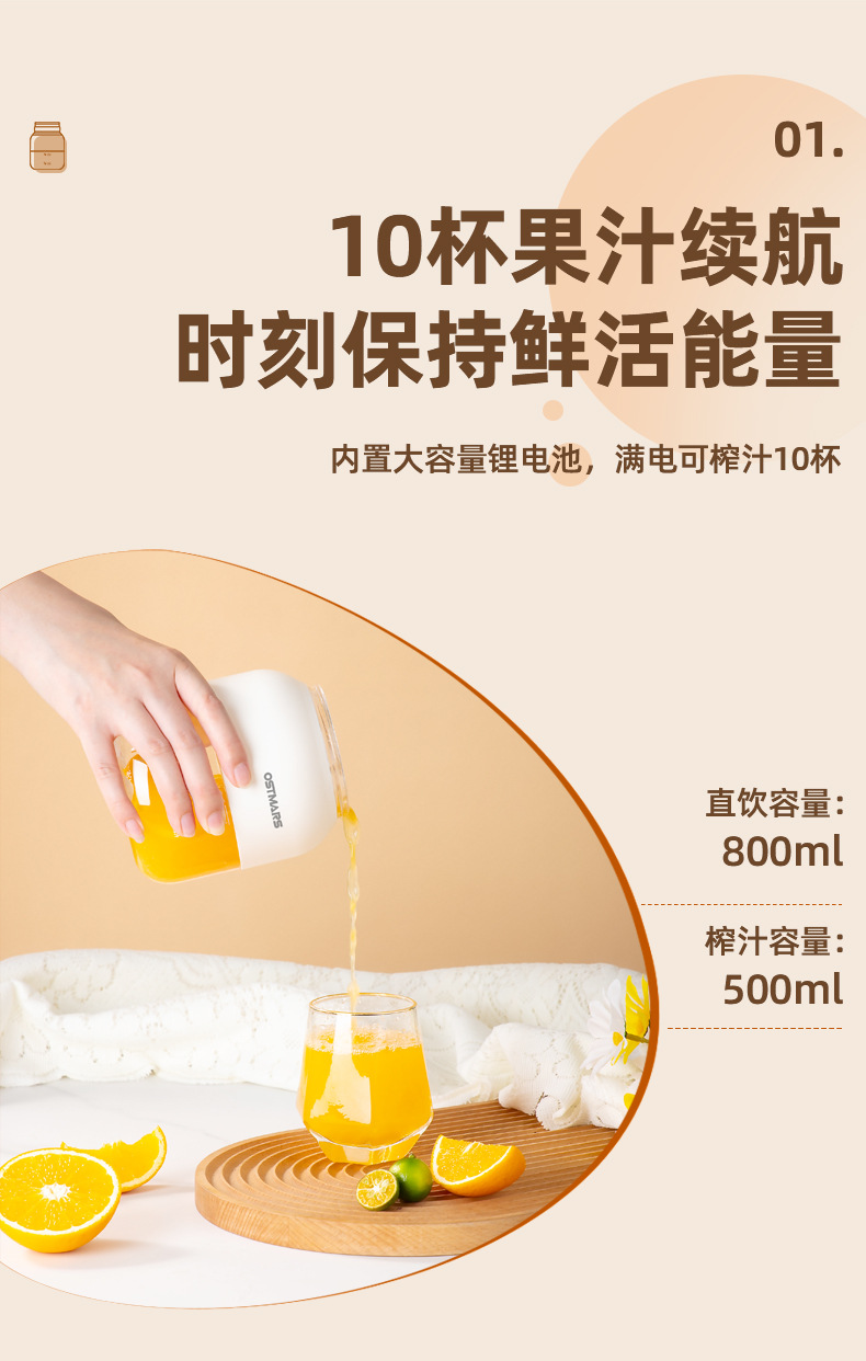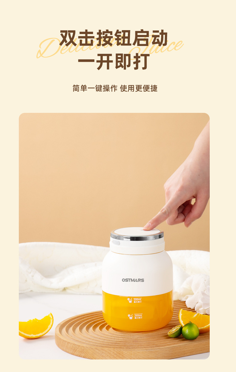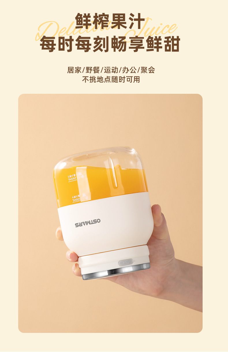 OSTMARS榨汁机电动便携式小质家用全自动果汁机小型榨汁桶吨吨杯