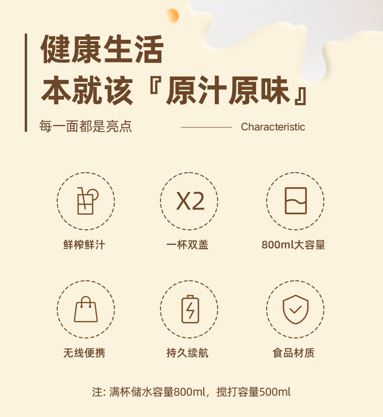 品牌: OSTMARS 功率: 80W 机身材质: 金属,塑料 容量: 401mL(含)-600mL(含) 是否内置电池: 内置电池 刀头类型: 五刀头以上 内胆材质: 食品级pp 是否为食品级材质: 是 功能: 榨汁 转速: 15001转/分(含)-18000转/分