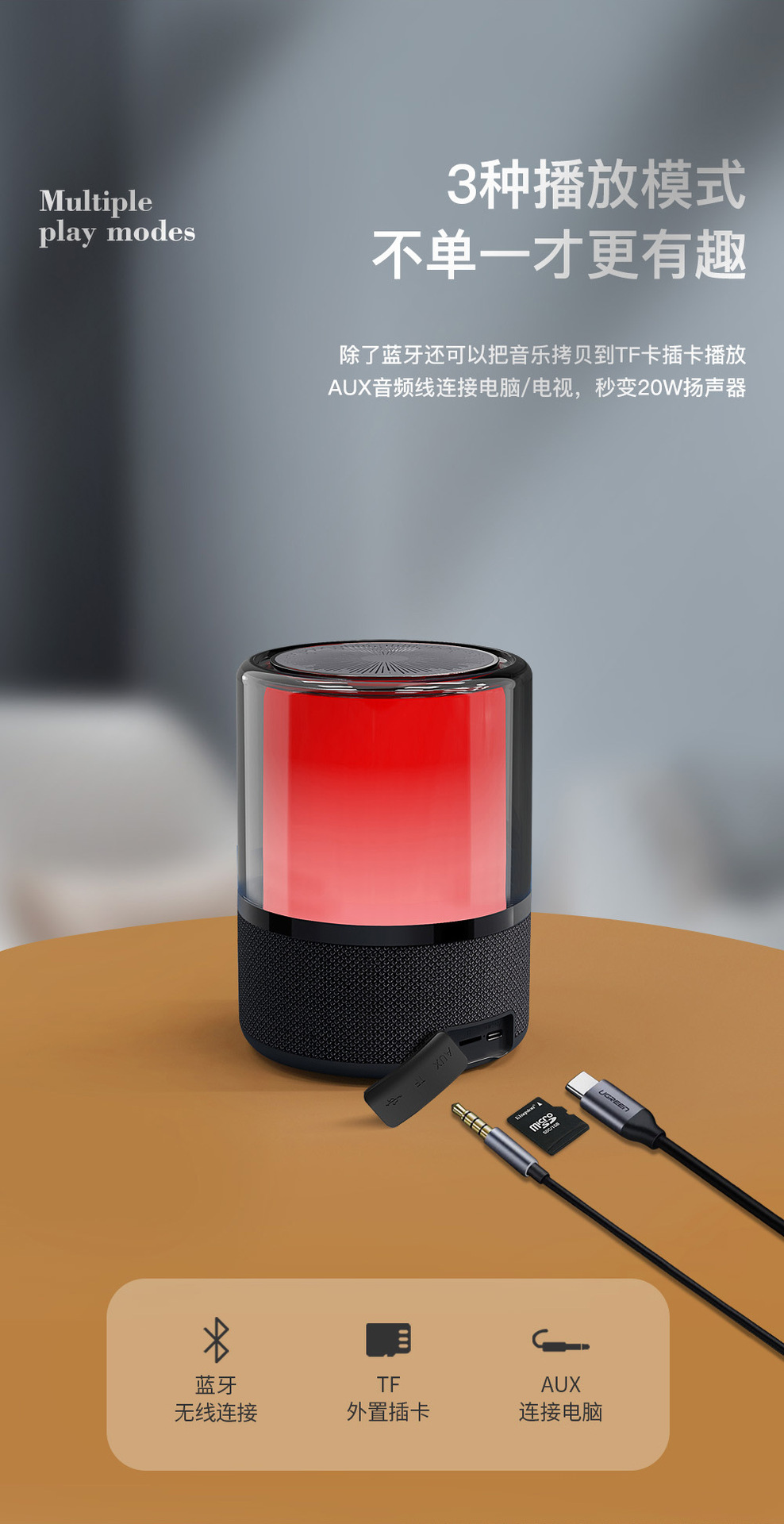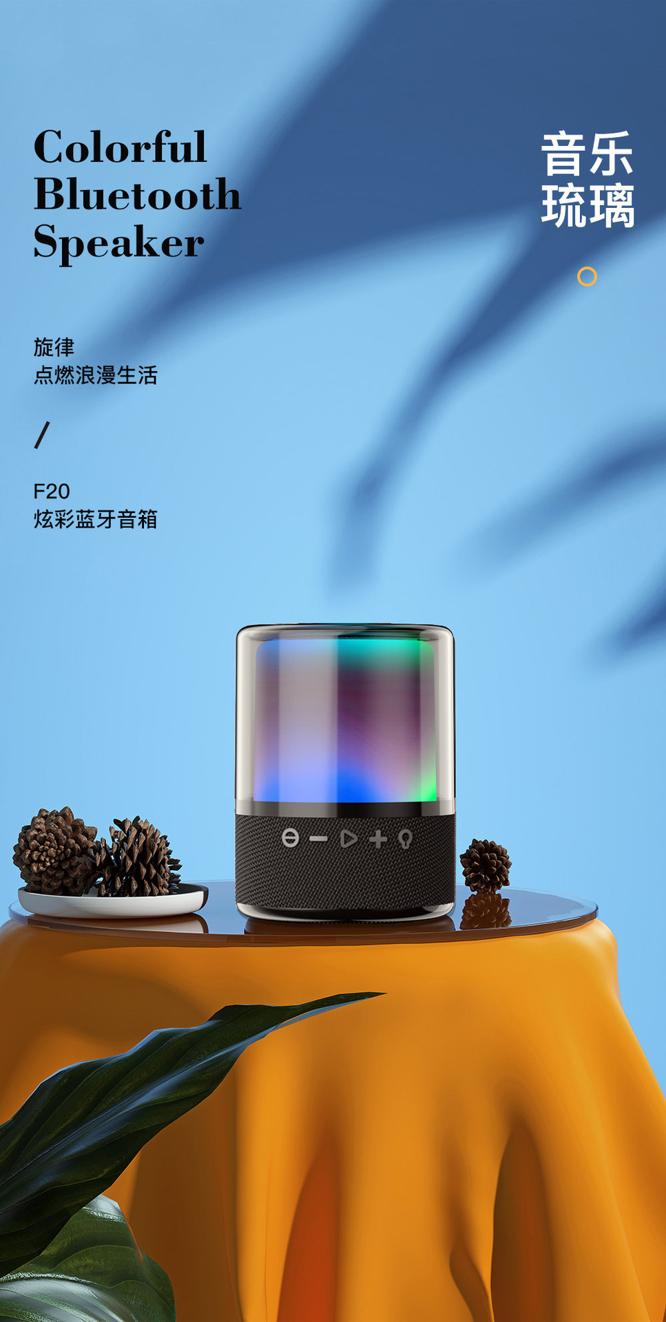 F20新款蓝牙音箱30W大功率低音炮蓝牙音响氛围灯琉璃桌面音响家用 English | 投诉