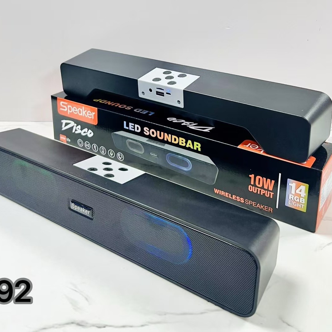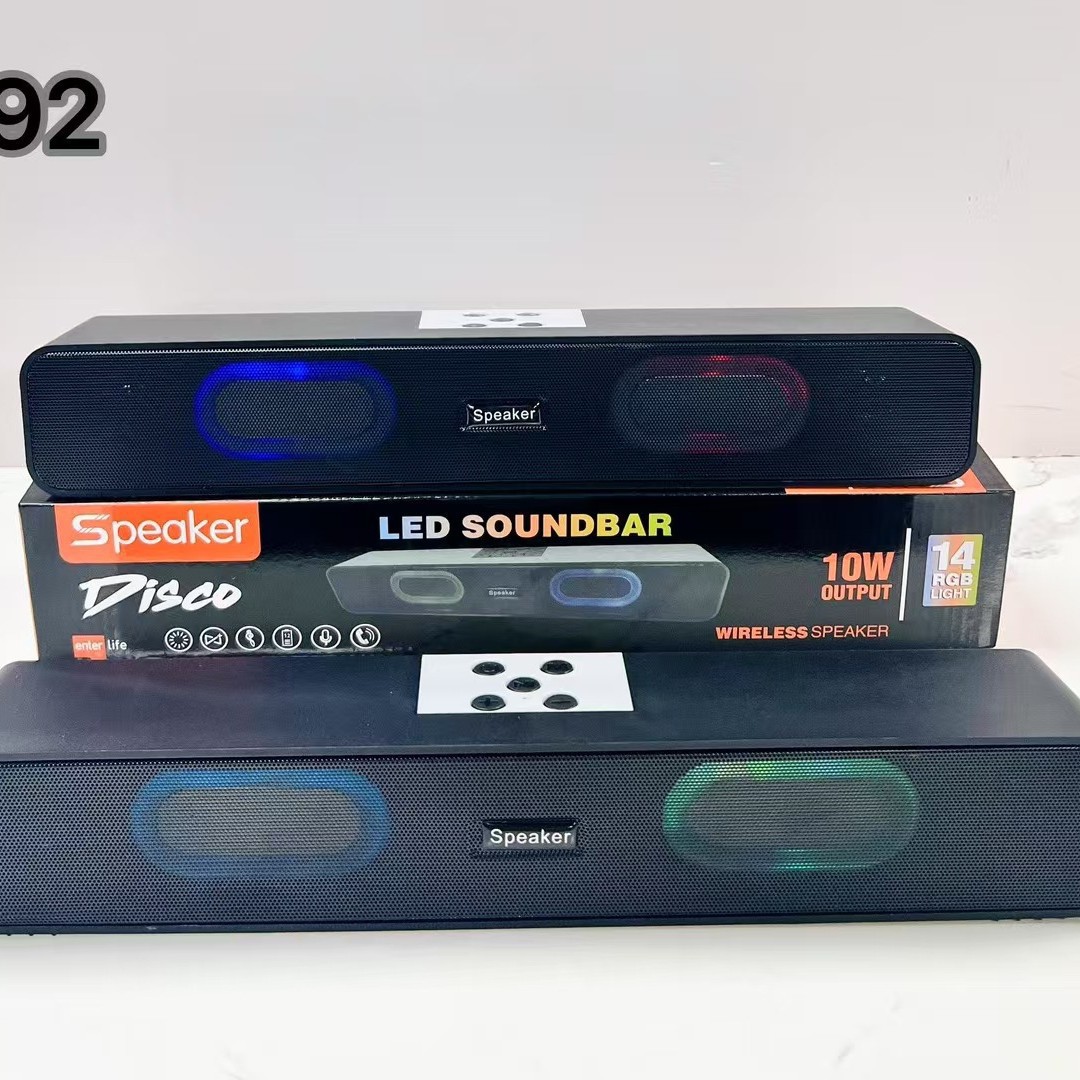新款型号:E92电池:800MAH喇叭:5W机子尺寸: 385*65*65 MM包装尺寸: 400*73*73 MM外箱尺寸: 58*36.5*41 CM颜色:黑装箱数量:40PCS毛重:28 KG净重:27 KG支持功能:BT/TF/USB/FM/AUX/TWS