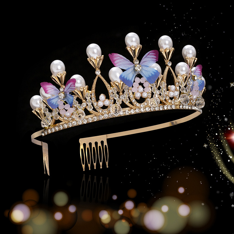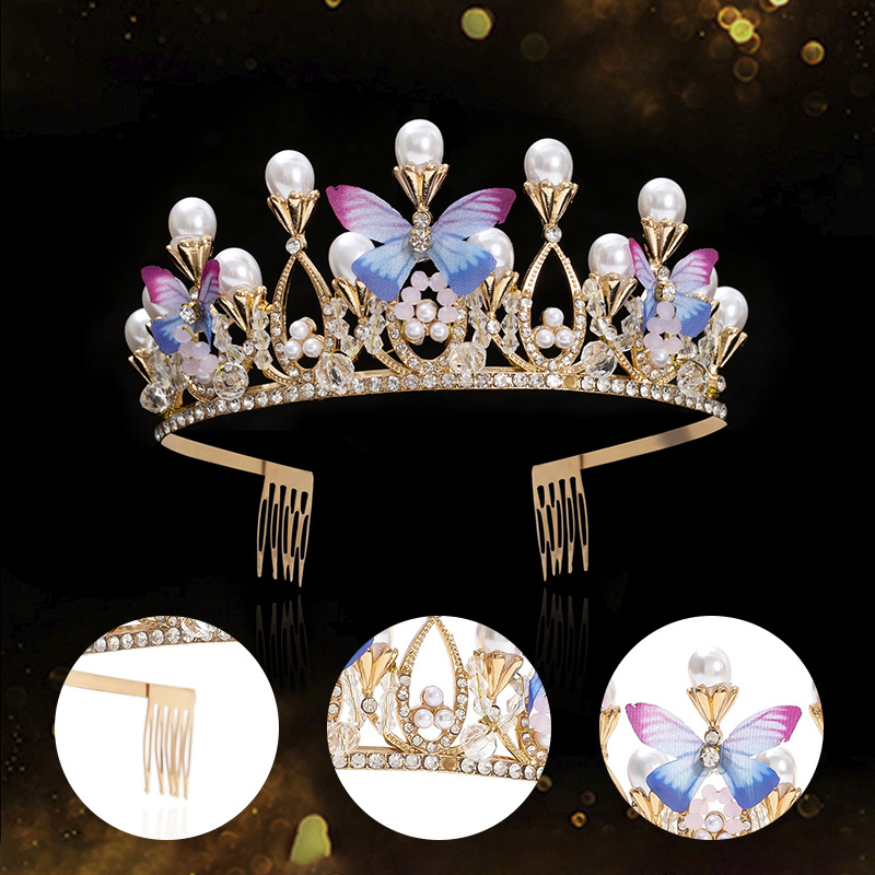 新款儿童珍珠手工水晶皇冠发属儿童舞台走秀礼服头饰简约蝴蝶设计 English | 投诉