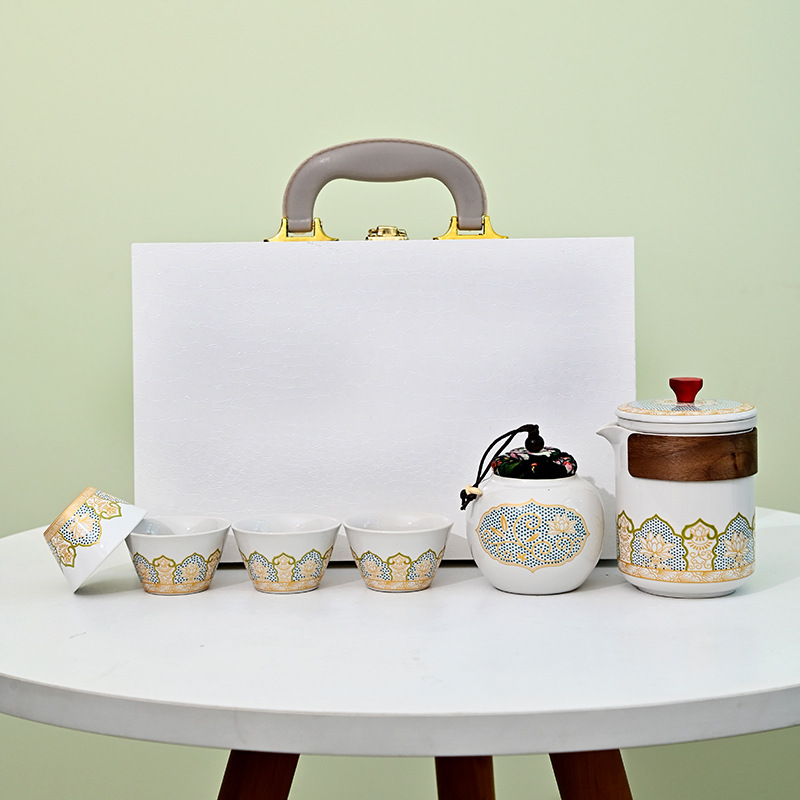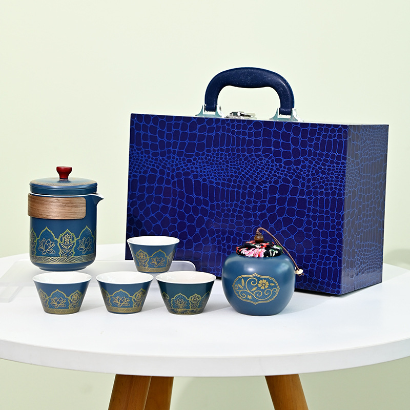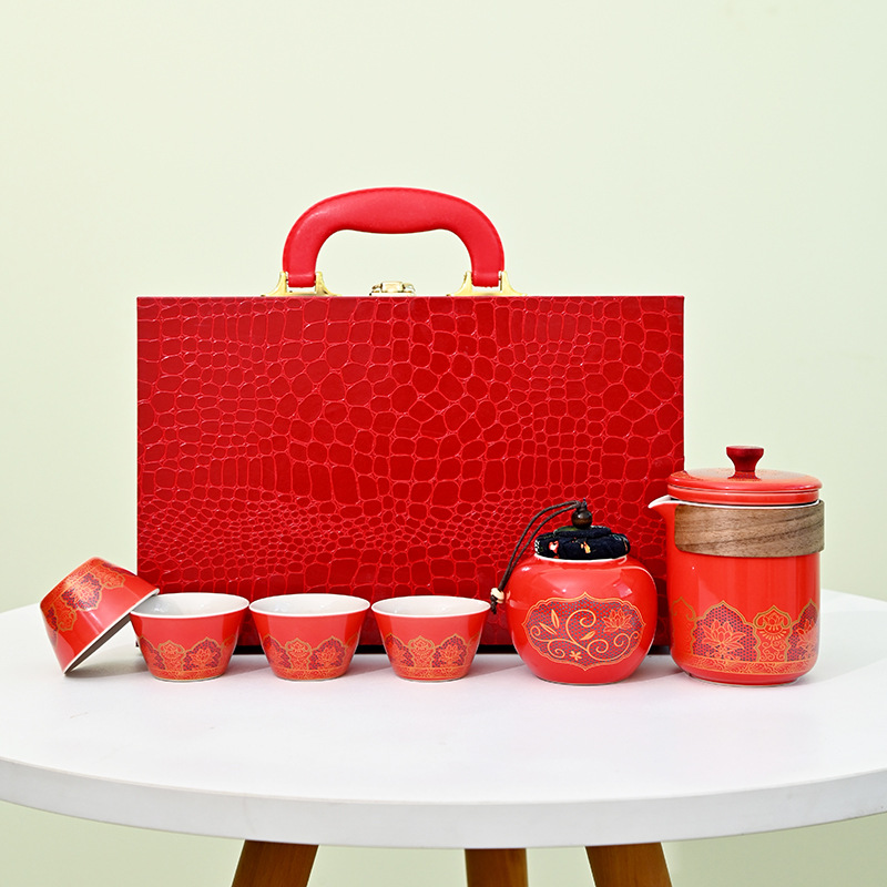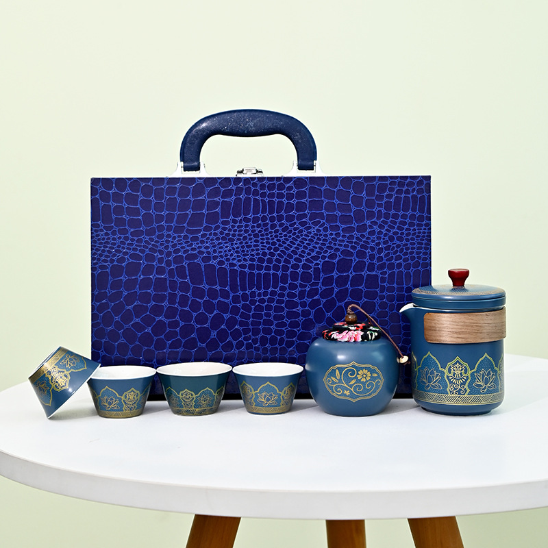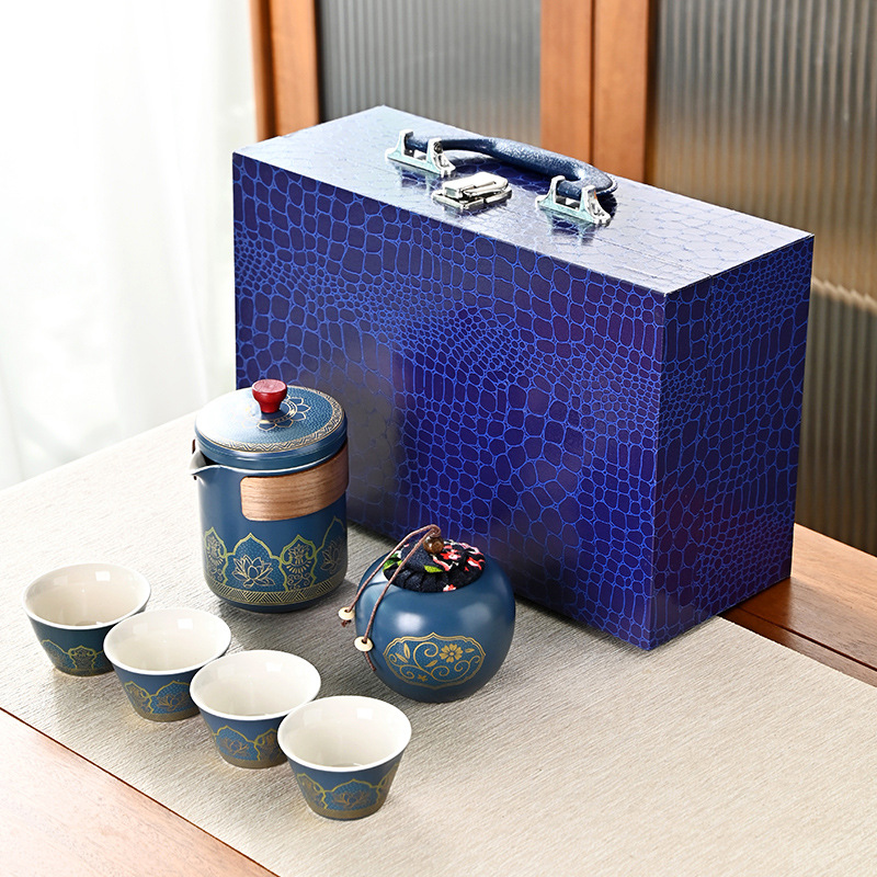 鳄鱼纹木盒高档古韵茶具套装