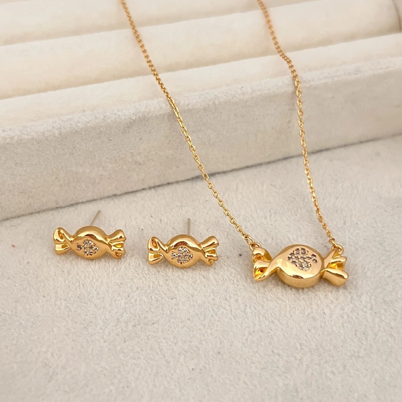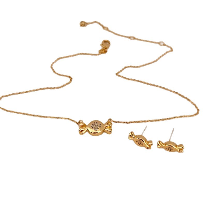 材质: 铜 处理工艺: 电镀 链子样式: 锁骨链 坠子材质: 铜镀金 品牌: 无 流行元素: 糖果 造型: 蝴蝶结 货号: k8181 产地: 青岛 是否多层: 否 周长: 41cm(含)-50cm(含) 颜色: 项链,耳钉 有可授权的自有品牌: 否 是否跨境出口专供货源: 否 上市年份/季节: 2025年秋季 风格: ins风 重量: 6g 风格分类: 个性风潮 适用人群: 女式 流行元素分类: 水果/食品 重量: 0.02 kg/个