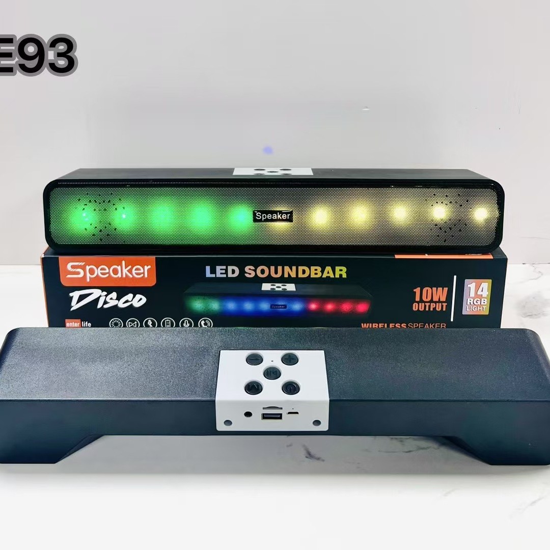 新款型号:E93电池:800MAH喇叭:5W机子尺寸: 385*65*65 MM包装尺寸: 400*73*73 MM外箱尺寸: 58*36.5*41 CM颜色:黑装箱数量:40PCS毛重:28 KG净重:27 KG支持功能:BT/TF/USB/FM/AUX/TWS