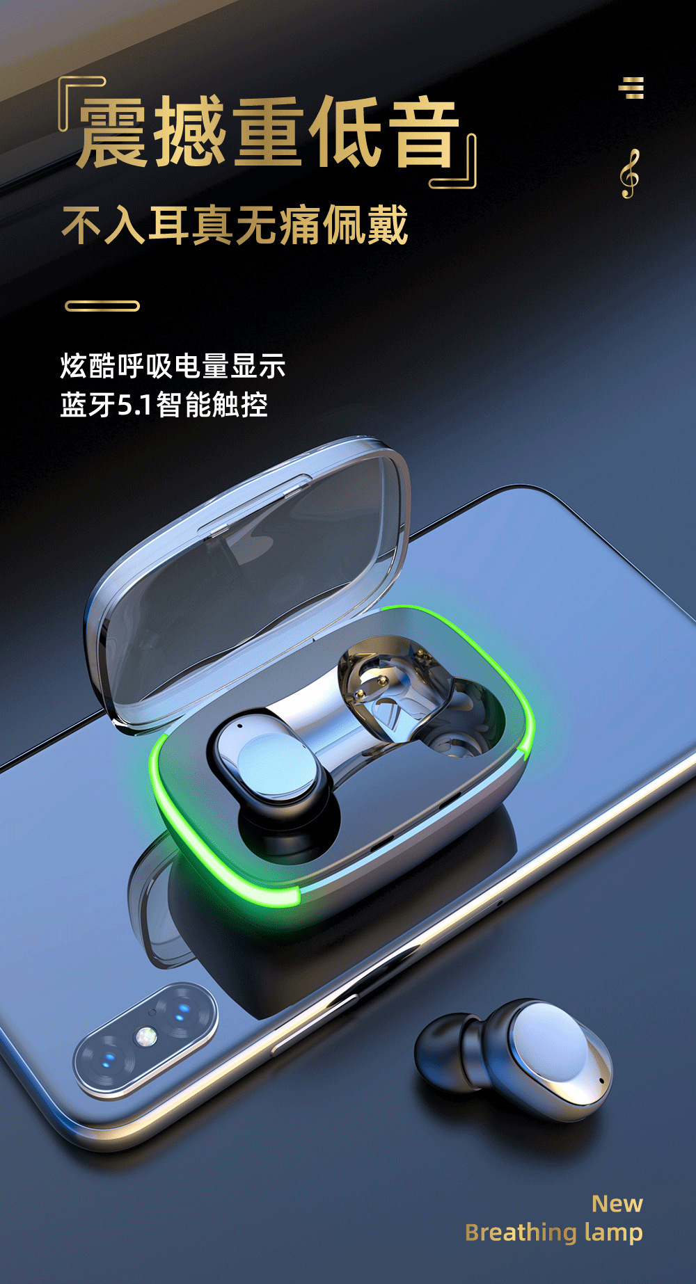 跨境新款Y60蓝牙耳机入耳式低功耗高音质呼吸灯无线运动耳机批发 English | 投诉