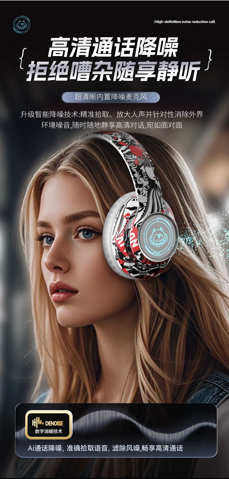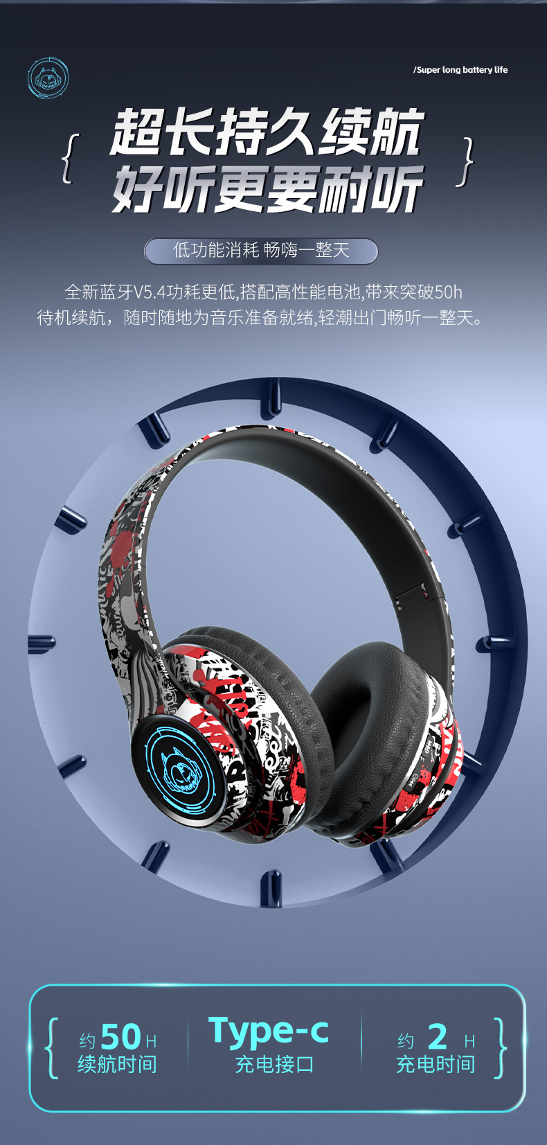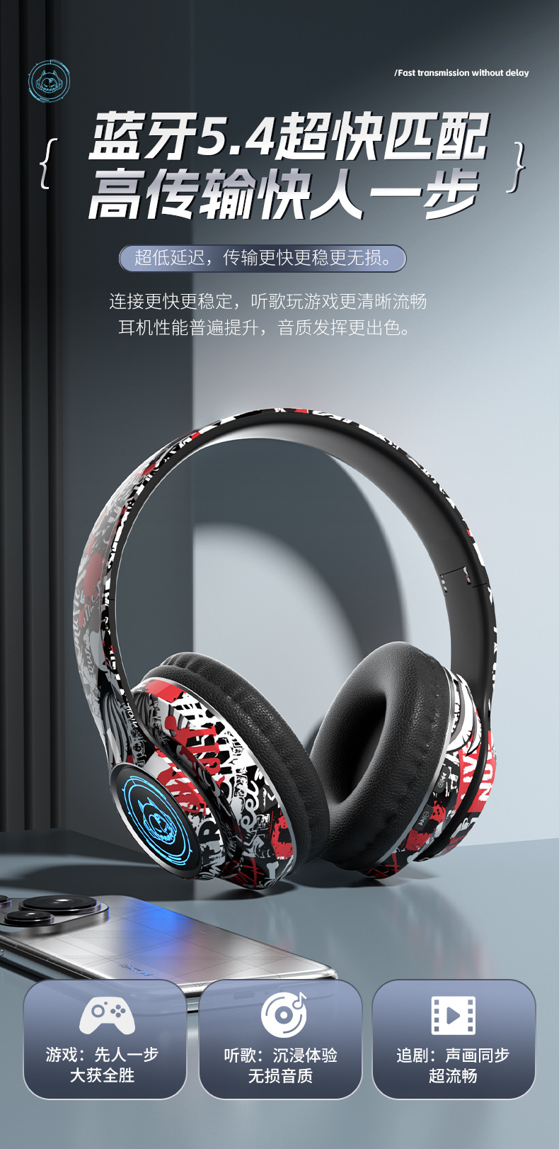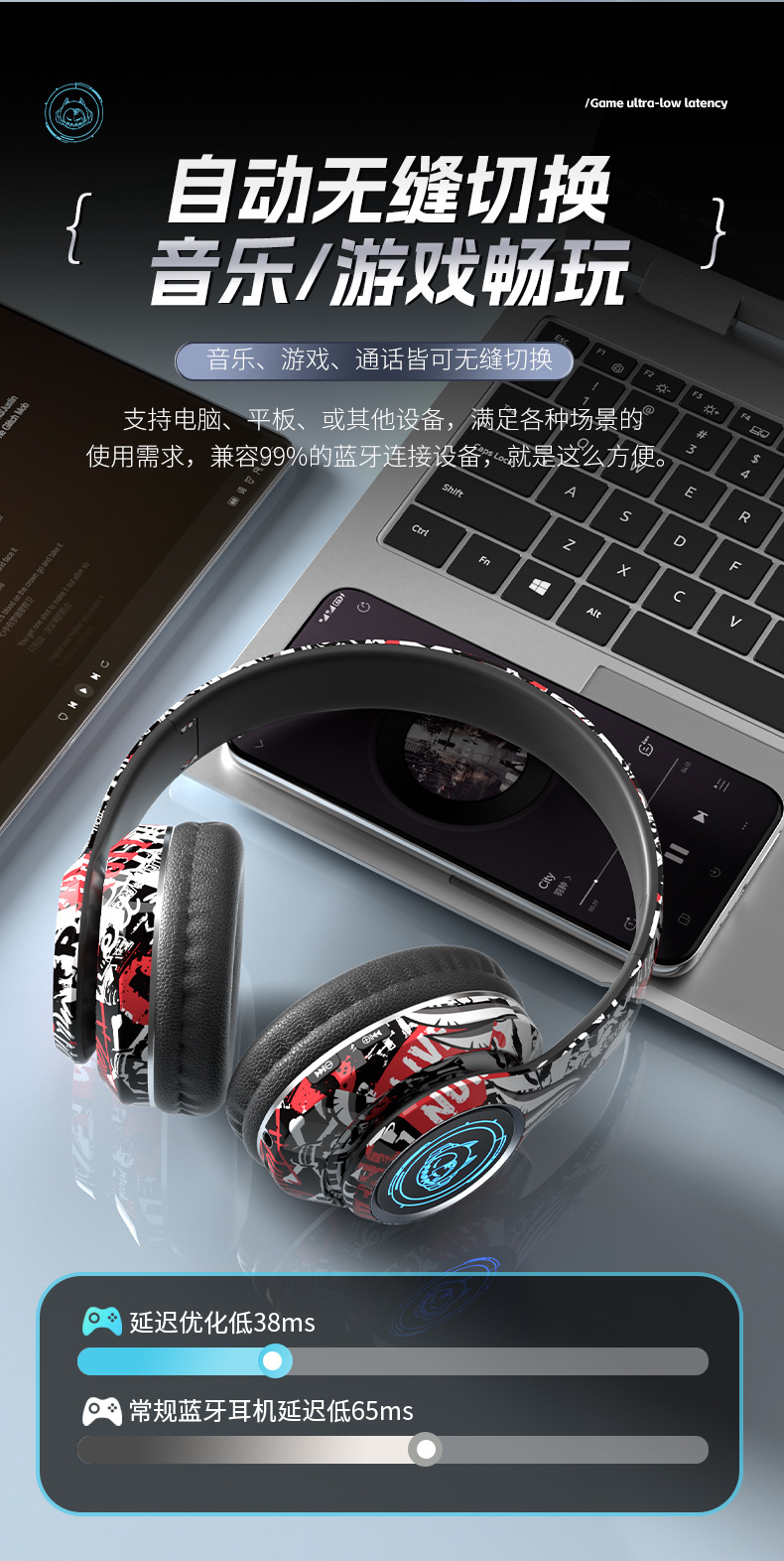 品牌: 中性 功能: 超长续航,通话功能,支持音乐,电竞低延迟 防水性能: 不支持防水 芯片类型: 杰理 材质: PC+ABS 续航时间: 8小时以上 使用方式: 头戴式 传输范围: 10米 蓝牙协议: 5.0 是否单双耳: 双边立体声 颜色: 涂鸦白,涂鸦黑,涂鸦红 主要下游平台: 亚马逊,速卖通 主要销售地区: 欧洲,南美,北美 有可授权的自有品牌: 是 是否跨境出口专供货源: 是 支持订制: 支持 是否专利货源: 否 模具类型: 私模 上市年份/季节: 2025 风格: 简约风 重量: 0.4 kg/副