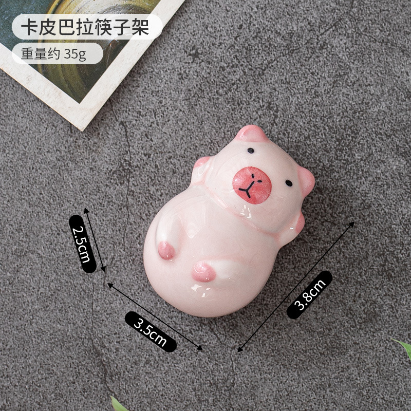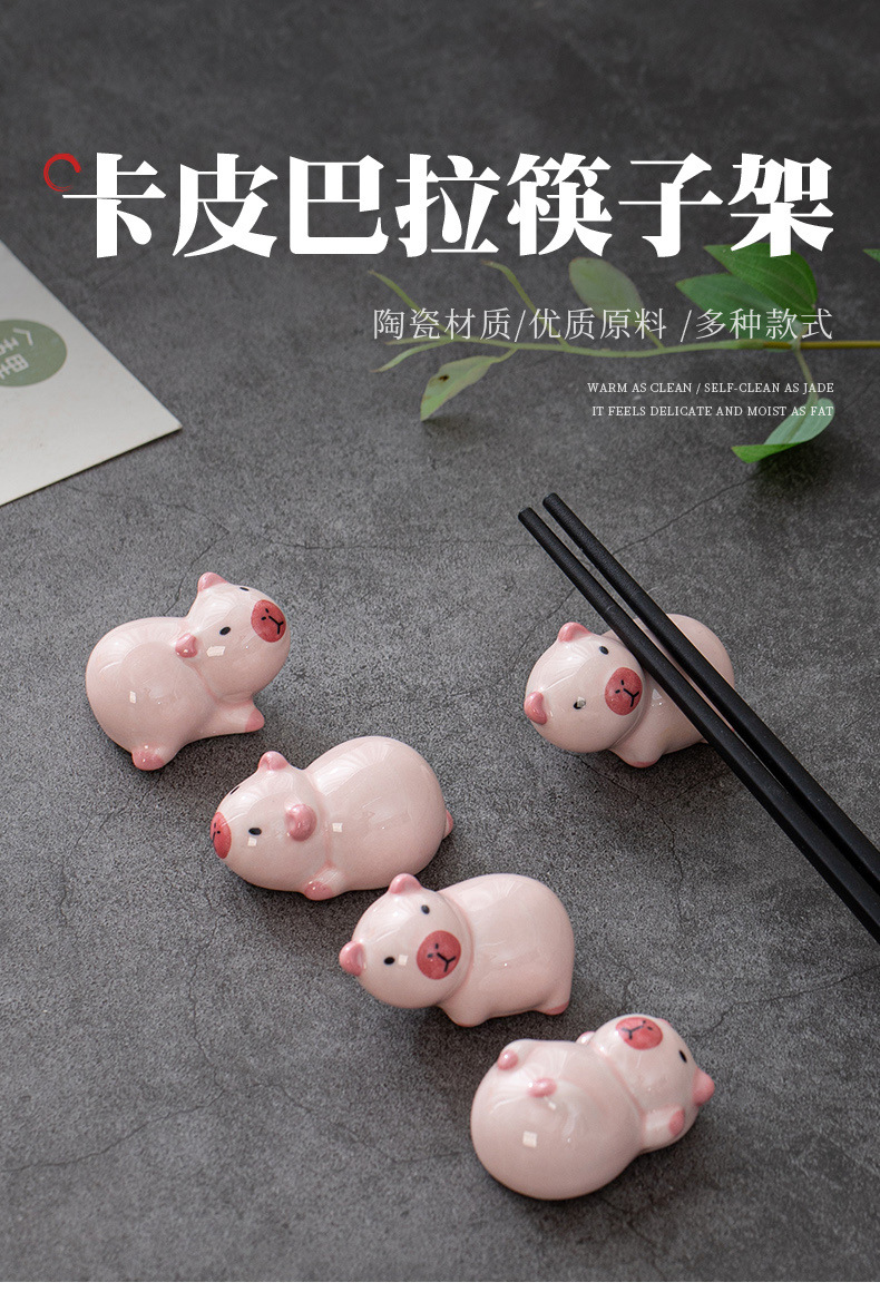 文创 ZAKKA陶瓷筷架日式动物花宠卡皮巴拉工艺品车载餐桌工位摆件 English | 投诉