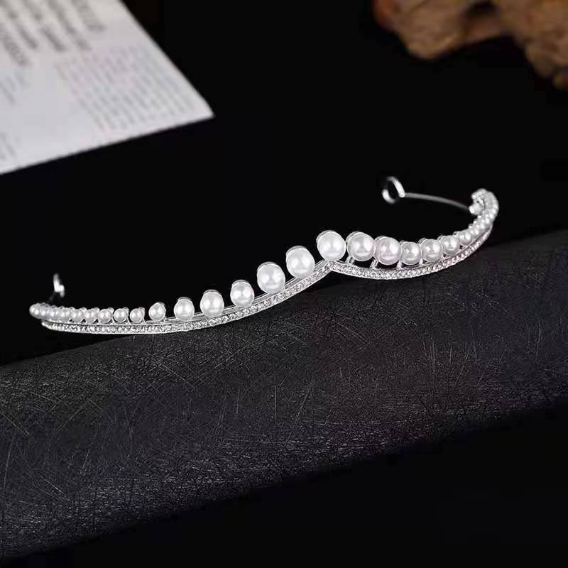 新款珍珠新娘皇冠舞台走秀礼服配饰新娘宴会礼服头饰拍照头饰 English | 投诉