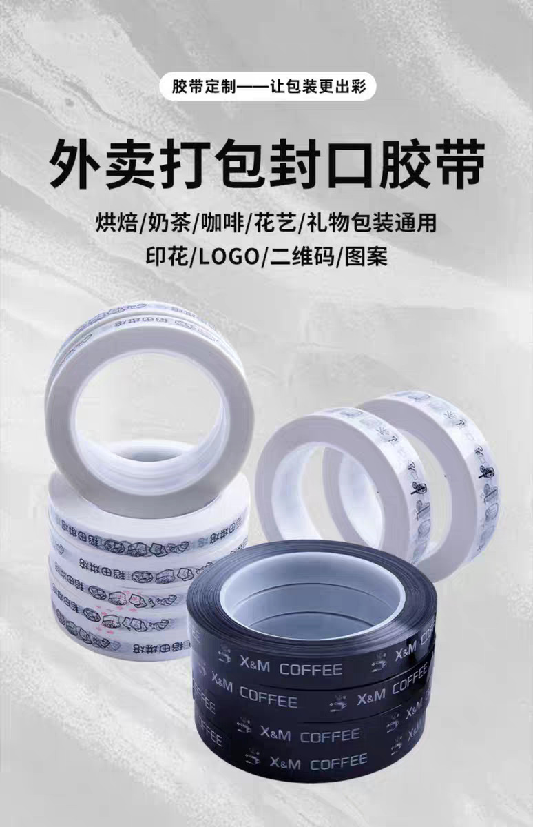 外卖封口窄胶带定制logo扎口胶带超市打包胶带印字防泄漏胶带定做