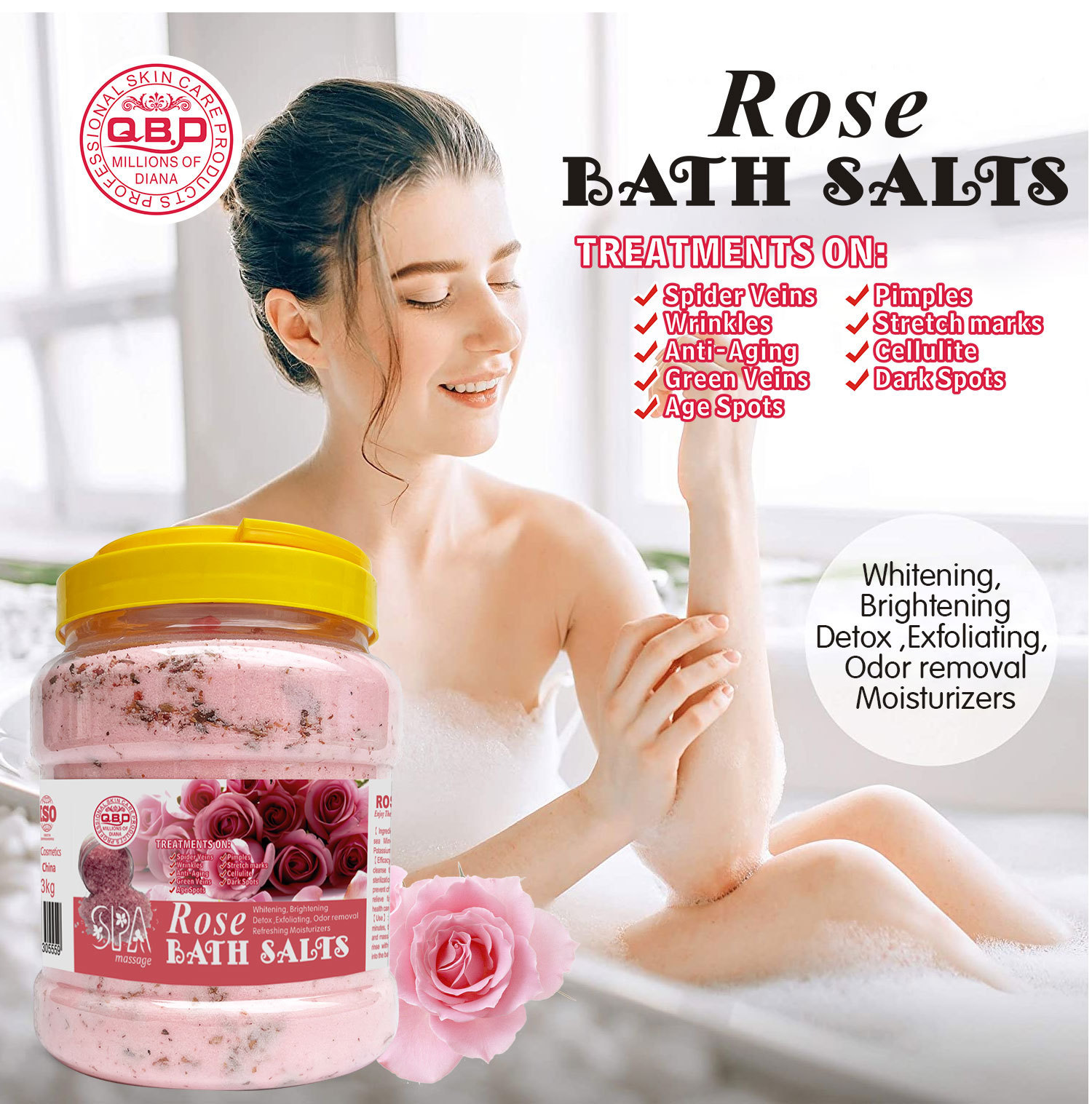 产品名称:3kg带花瓣浴盐 品牌:DRMEINAIER单品毛重 3000G 净含量:3000G装箱规格 12pcs/ctns 箱重36kg箱单品尺寸 14.5*19cm装箱尺寸 MEAS 57.5*44*20.8CM