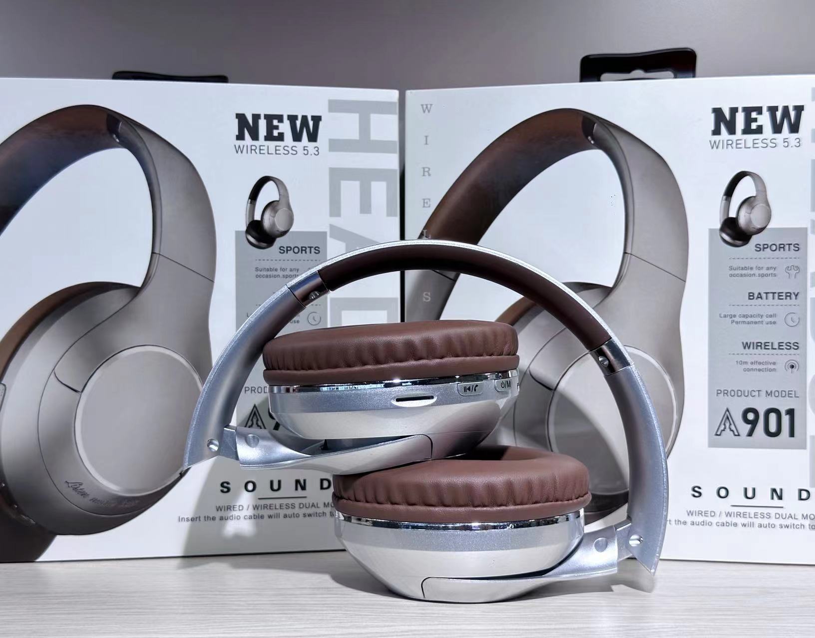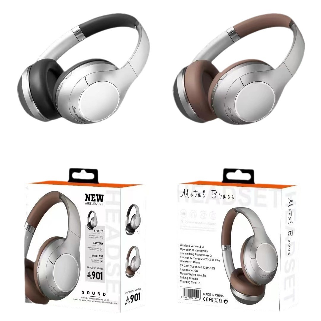 901BT创意复古金属无线头戴式蓝牙耳机金属喷砂装饰片 FM折叠耳机