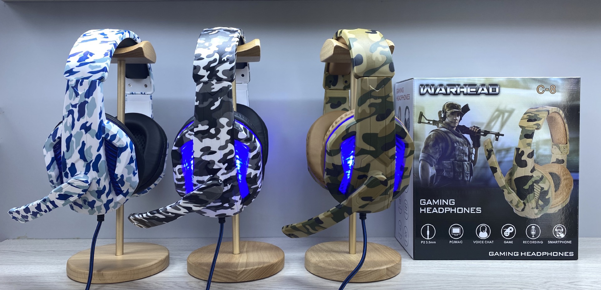 型号:C-8迷彩游戏耳机装箱数量:30PCS装箱重量:21KG装箱规格:60*47.5*47CM
