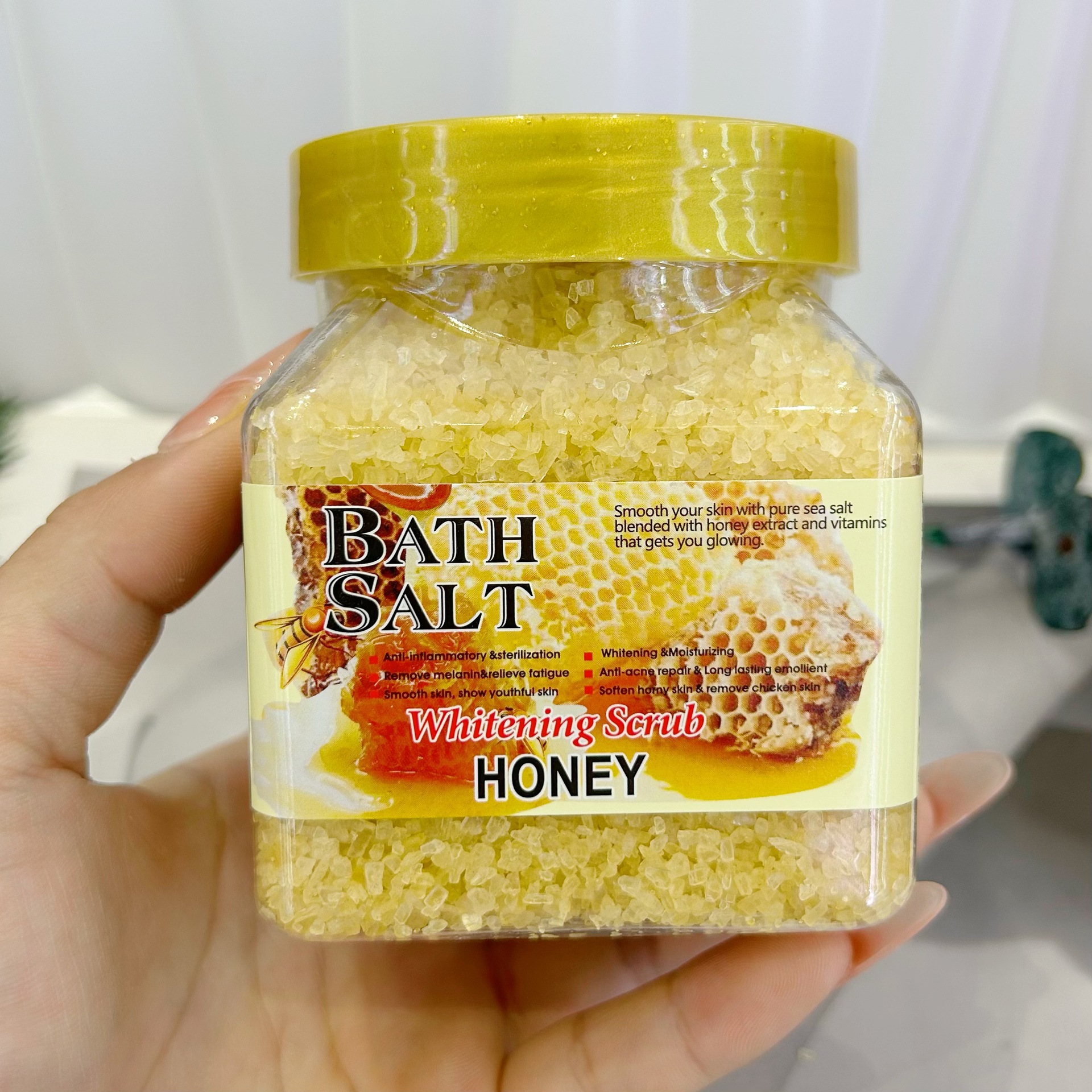 产品名称: 400g身体磨砂粗盐 品牌:DRMEINAIER单品毛重: 500g 净含量:400g装箱规格: 96pcs1ctns 箱重:46kg/箱单品尺寸 : 7.3*8.5cm装箱尺寸 : MEAS 44.5*33.2*42.4 CM包装:如图 可按客户需求来订做
