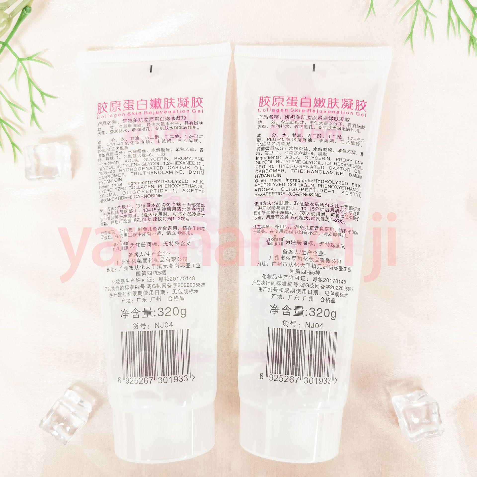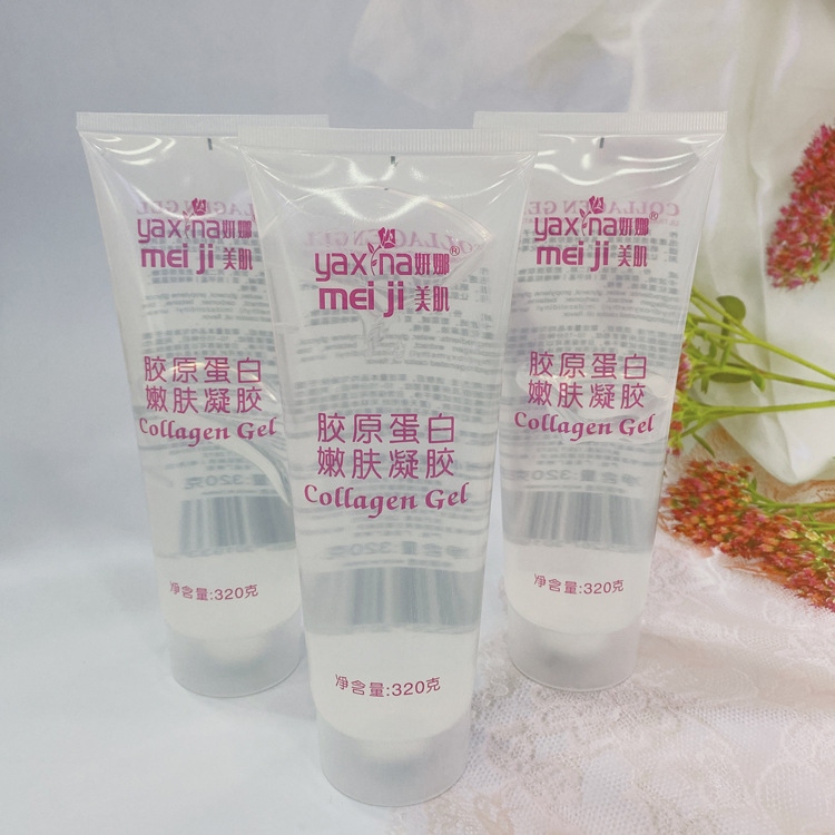产品名称: 320g胶原蛋白嫩肤凝胶 品牌:yannameiji单品毛重 :320g 净含量:320g装箱规格: 72pcs/ctns 箱重23kg/箱单品尺寸:7.3*19.4装箱尺寸 MEAS46.5*41.5*22cm包装:如图 可按客户需求来订做