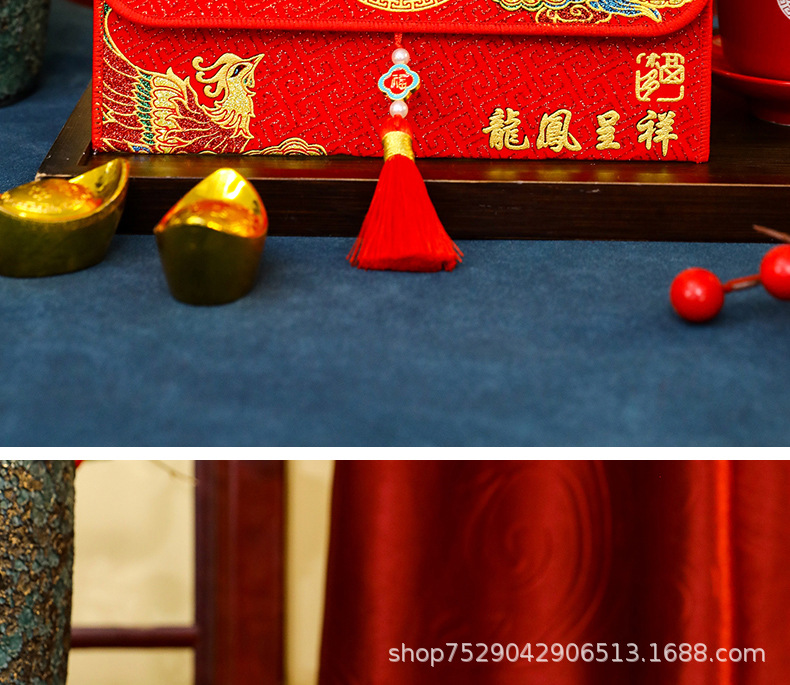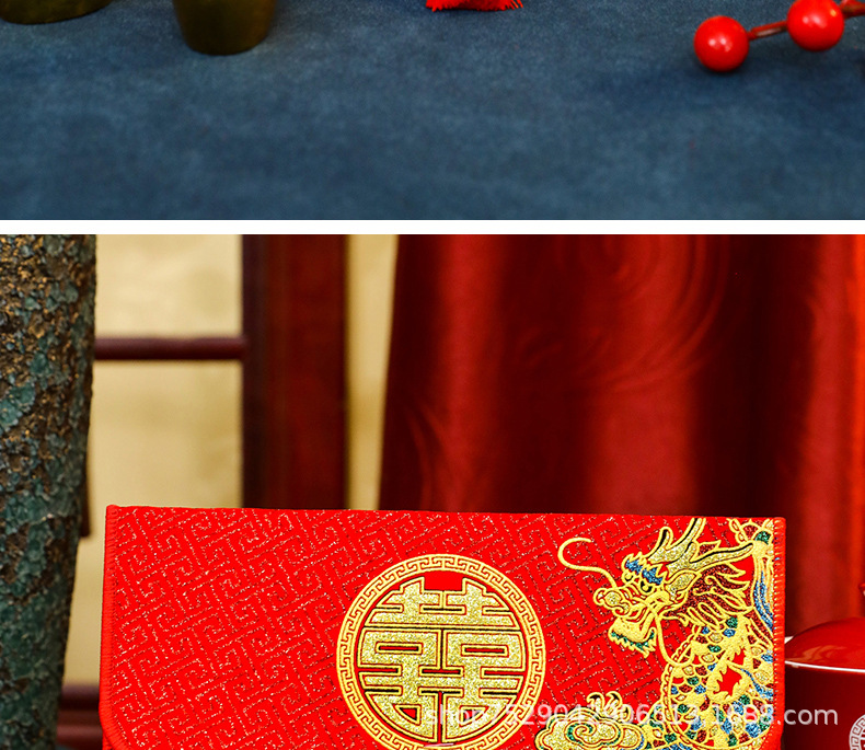 材质: 布 品牌: 王政 规格: 万元容纳布艺红包 风格: 中式 使用场合: 婚庆 加印LOGO: 可以 货号: F97H6TMS8H78JJ 是否专利货源: 否 颜色: 永结同心,龙凤呈祥,百年好合,平安喜乐 重量: 0.5 kg/件