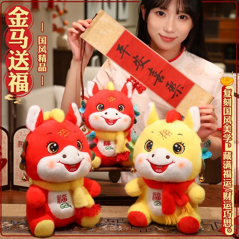2026马年吉祥物娃娃生肖马公仔金马送福玩偶公司年会摆件毛绒玩具