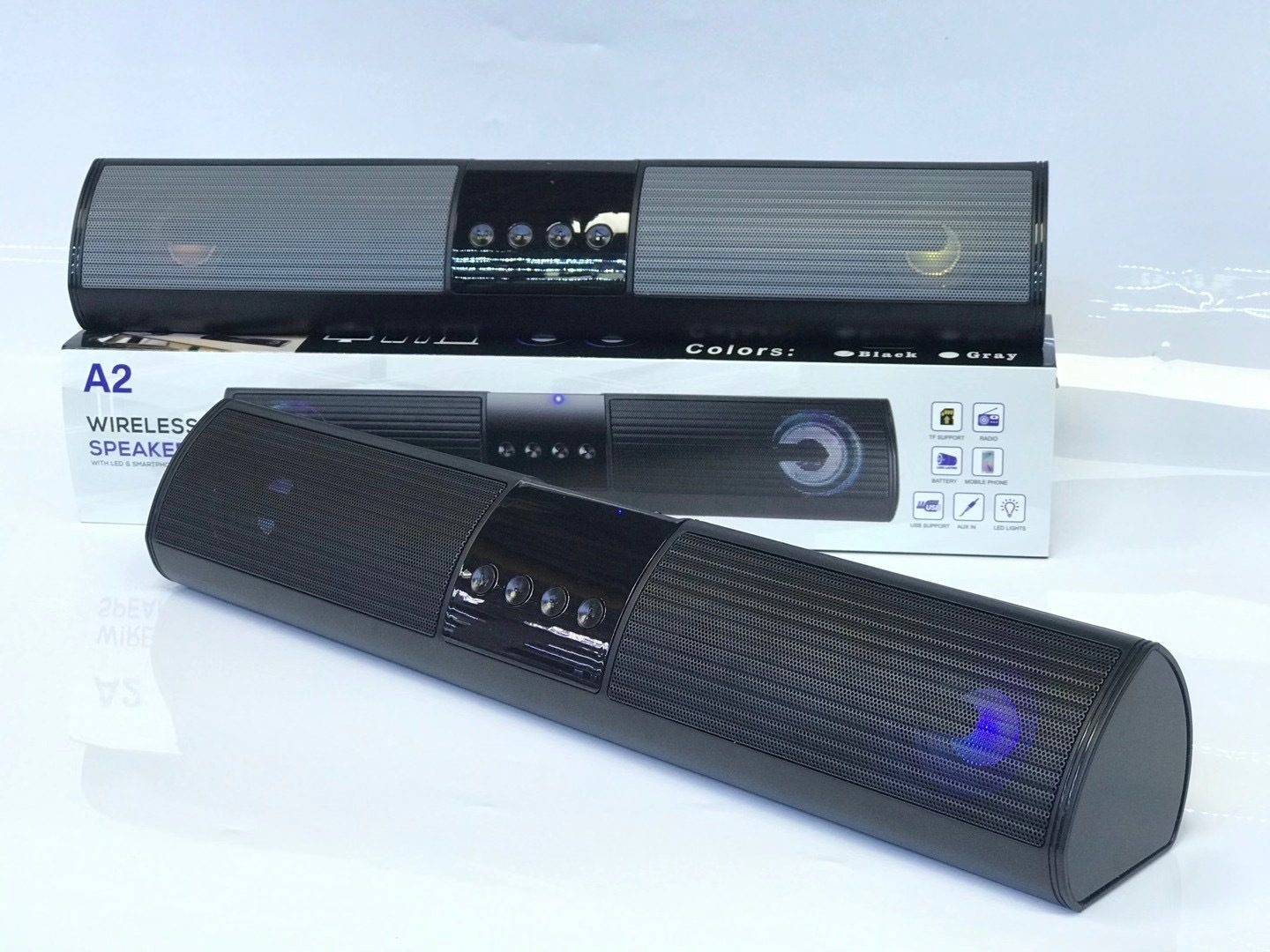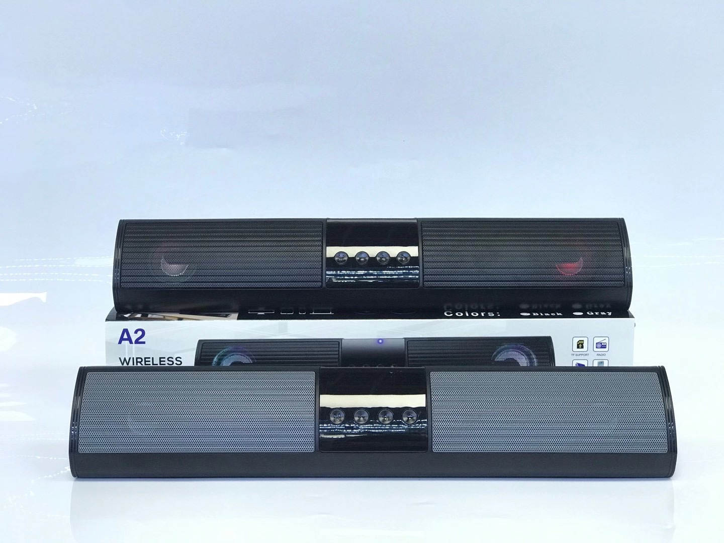 型号:A2机子尺寸:400*70*70mm包装尺寸410*80*80mm装箱数量:30PCS整箱毛重:23KG外箱尺寸49.8*42.5*41.5cm功能:TF,FM,USB,BT,AUX,