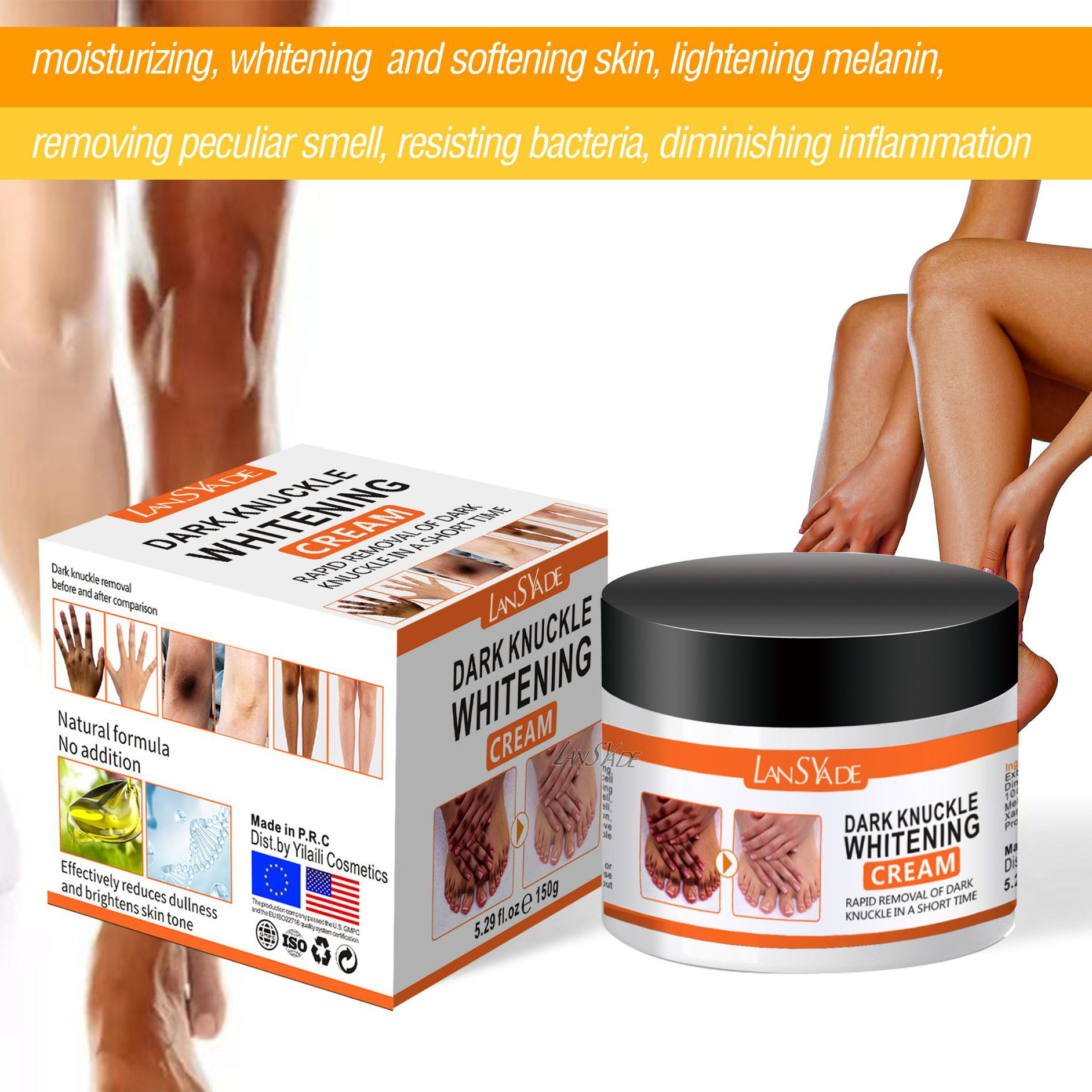 产品名称 150g关节祛黑霜 品牌:LANSYADE单品毛重 190g 净含量150g装箱规格 144pcs/ctns 箱重28kg箱单品尺寸 长7.5*高5.8*7.5宽cm 7*5.5cm装箱尺寸 MEAS 48.5x32.5x41.5 CM包装:如图 可按客户需求来订做