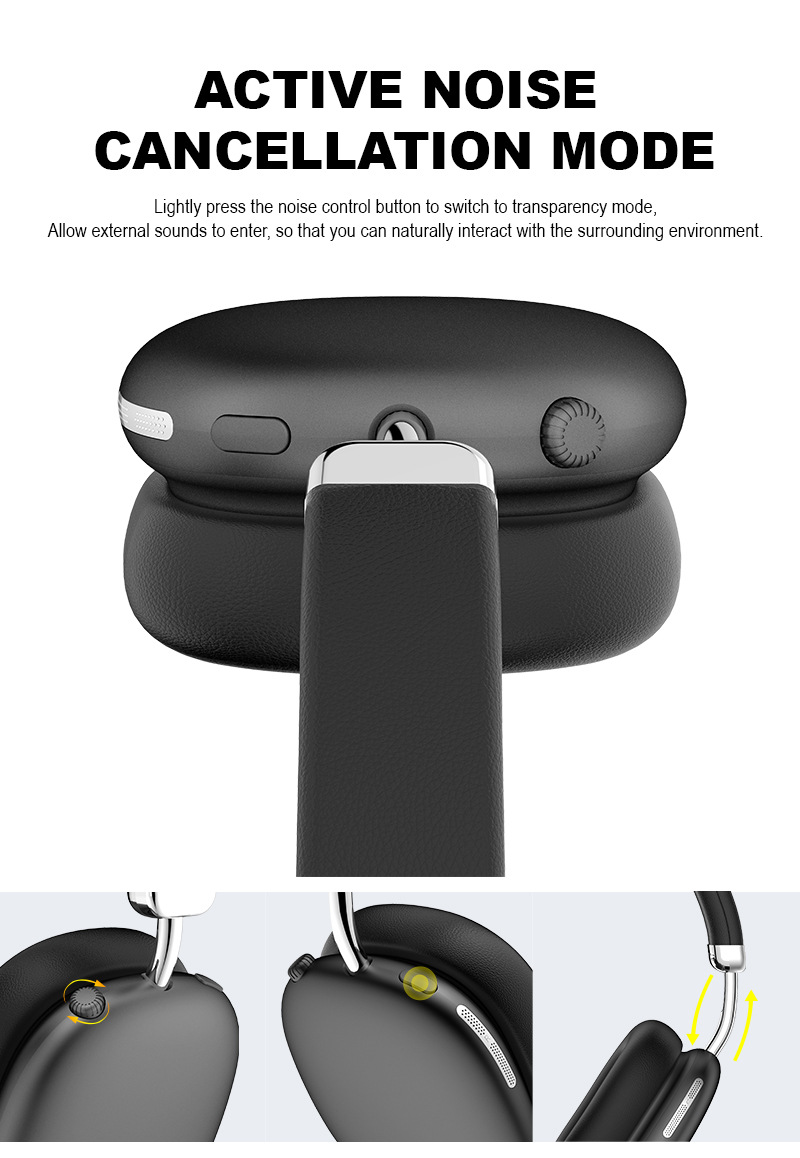 跨境爆款头戴耳机主动降噪可拆卸磁吸耳罩超长续航头戴式蓝牙耳机