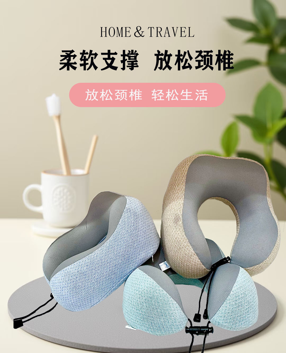 流星雨双峰u型枕记忆棉颈枕旅行枕便携慢回弹护颈枕印制现货批发