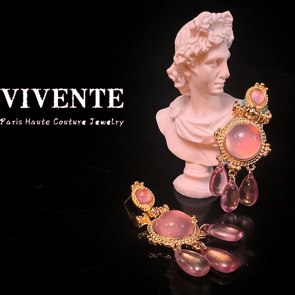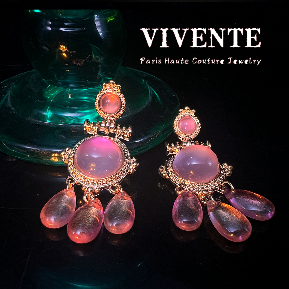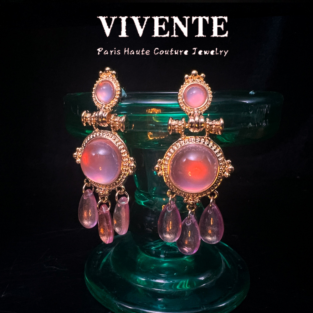 新中式古典胭脂粉水滴耳饰宫廷风复古镀真金925针国风耳环源头工