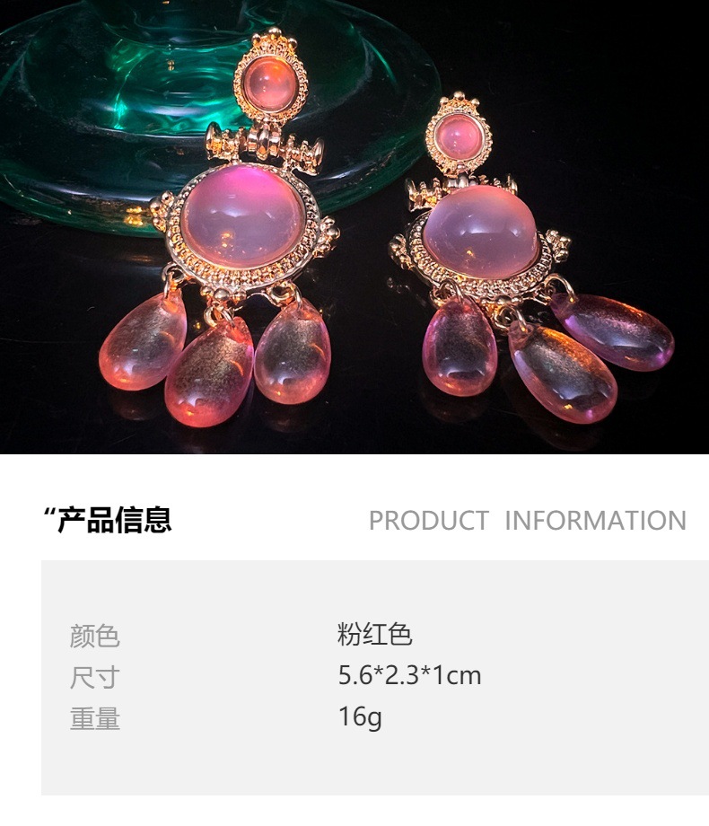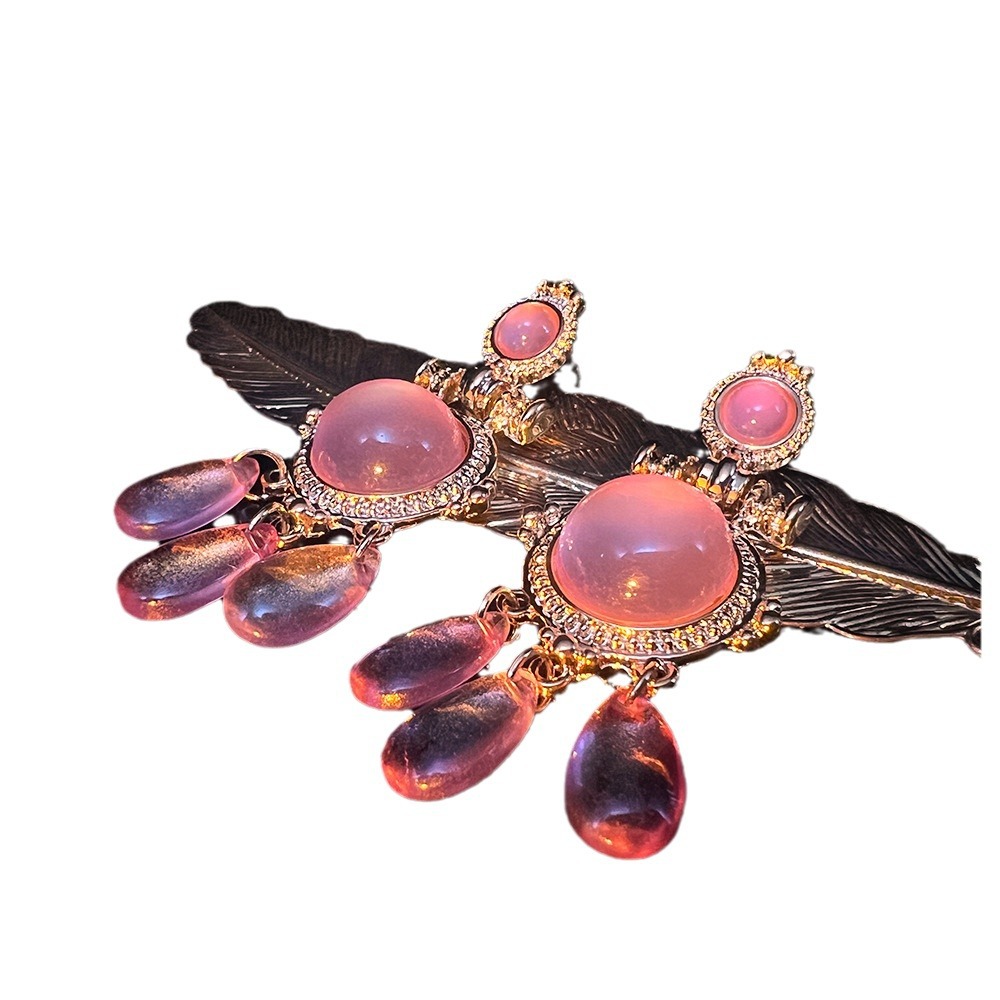 新中式古典胭脂粉水滴耳饰宫廷风复古镀真金925针国风耳环源头工 投诉