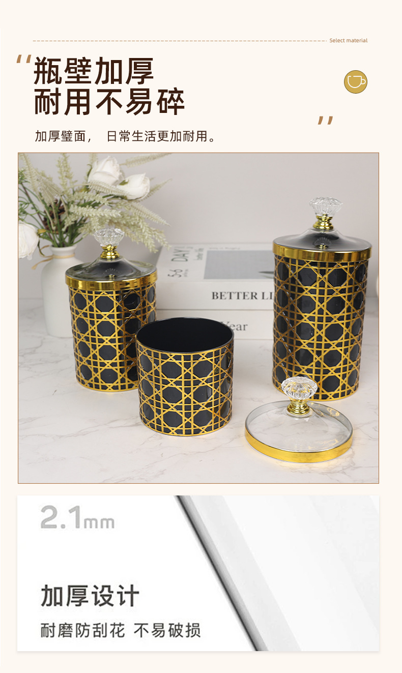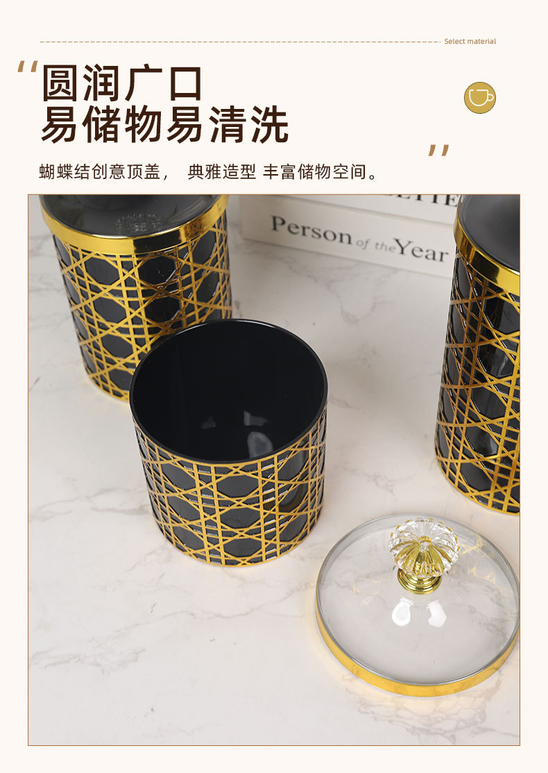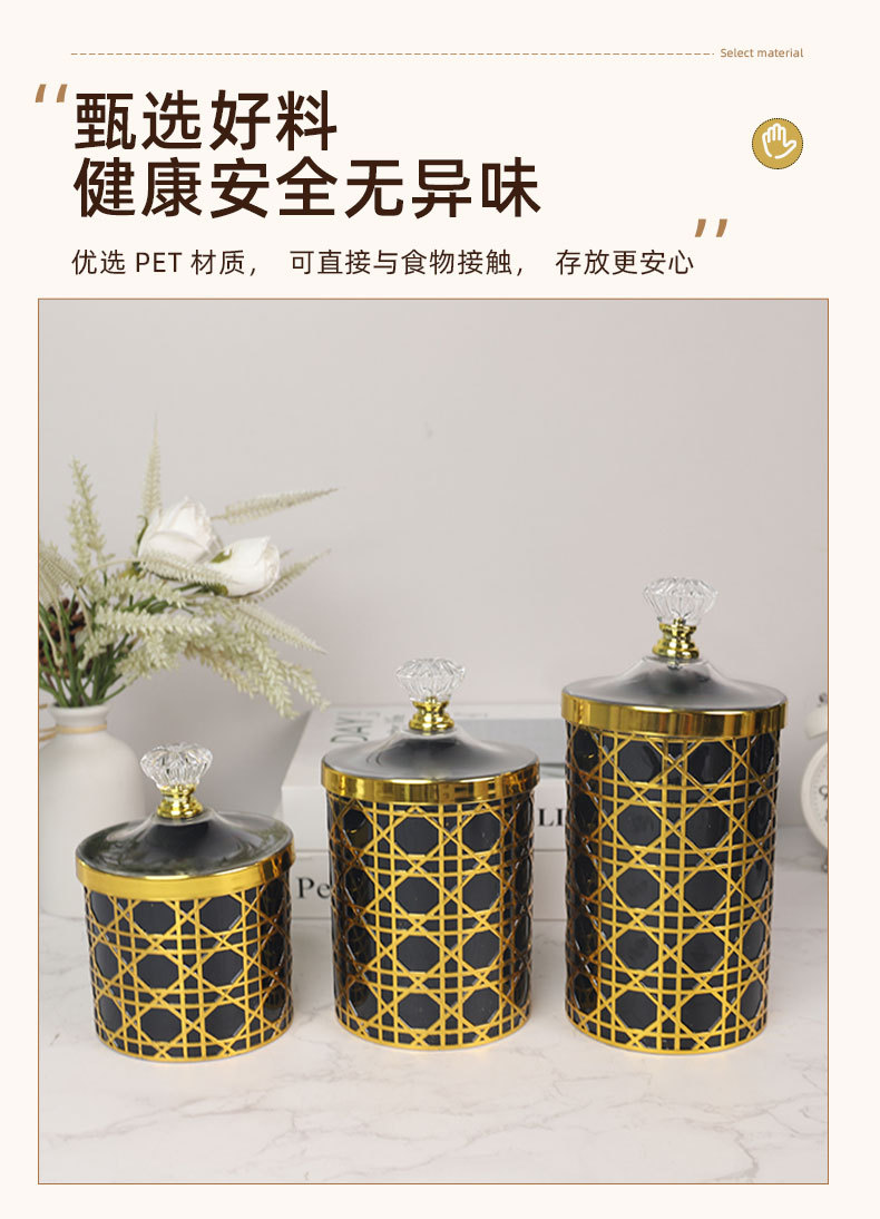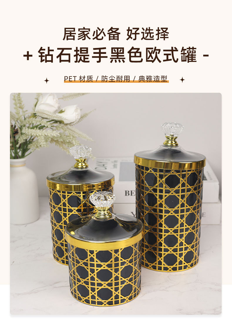 轻奢钻石提手黑金格纹欧式罐塑料糖果罐餐桌客厅桌面收纳罐装饰 投诉