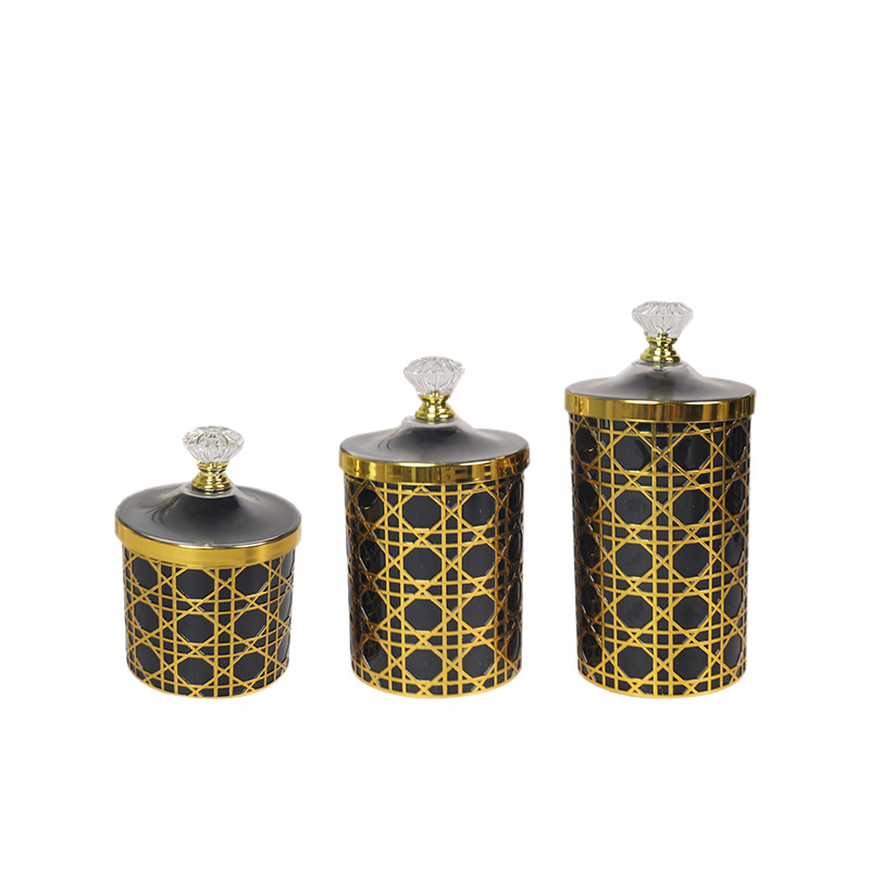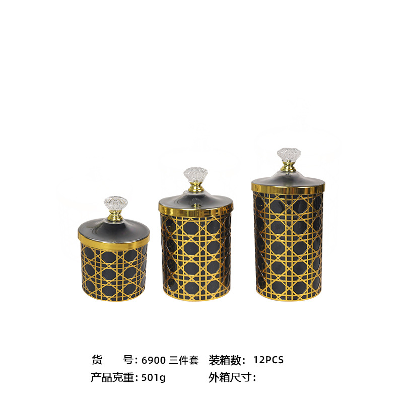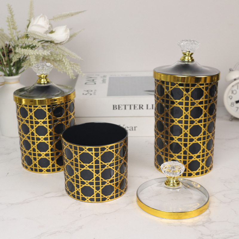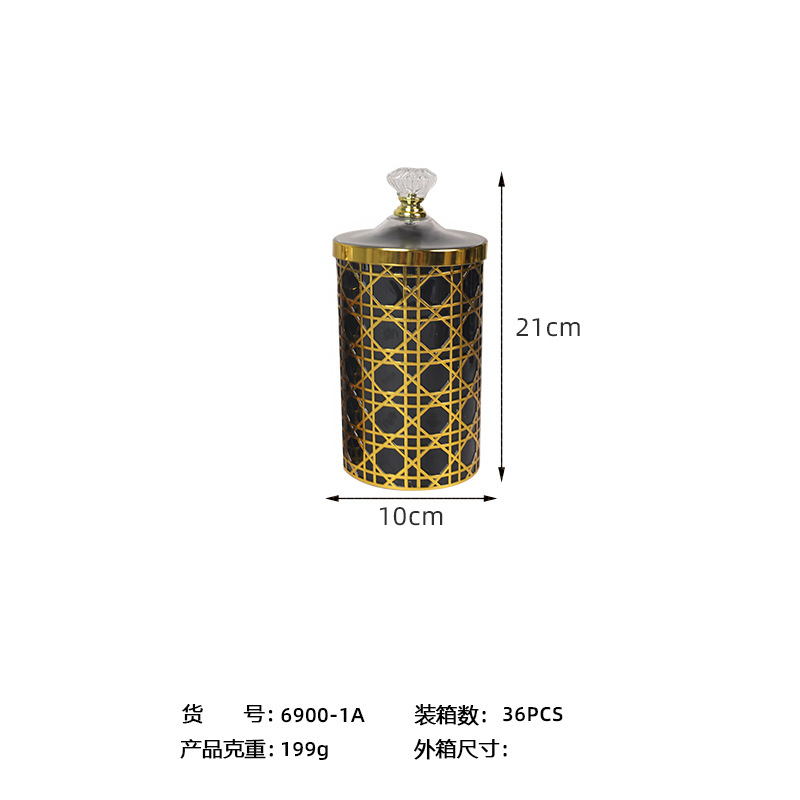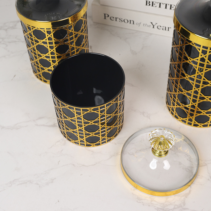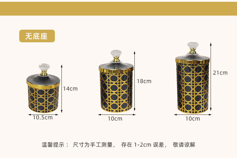 轻奢钻石提手黑金格纹欧式罐塑料糖果罐餐桌客厅桌面收纳罐装饰 投诉