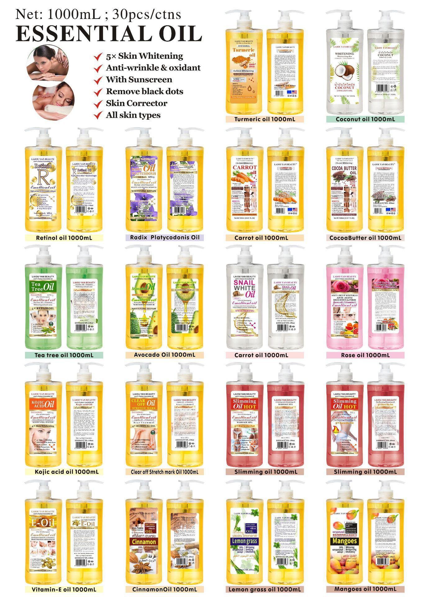 产品名称 :1000ml 曲酸润肤按摩油 品牌:LAIOUYANBEAUTY