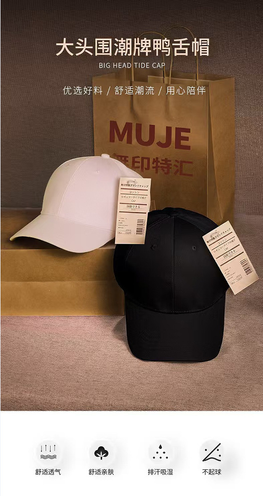 无印光板帽子男黑色鸭舌帽男款日系男帽大头围男士棒球帽女显脸小 English | 投诉