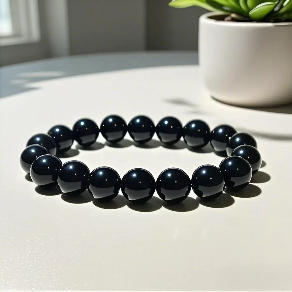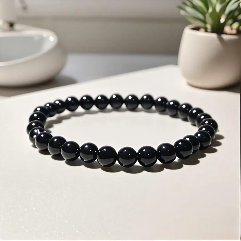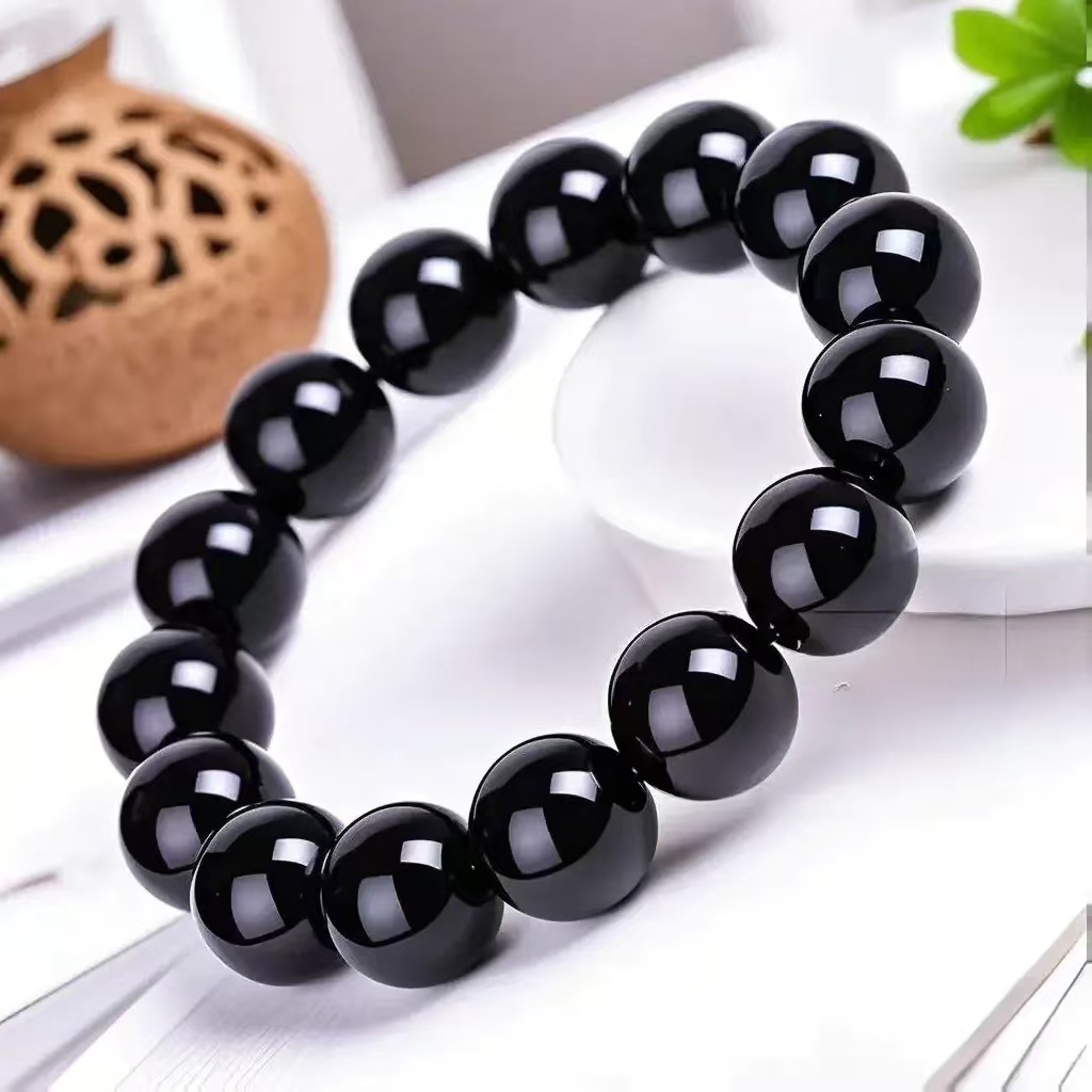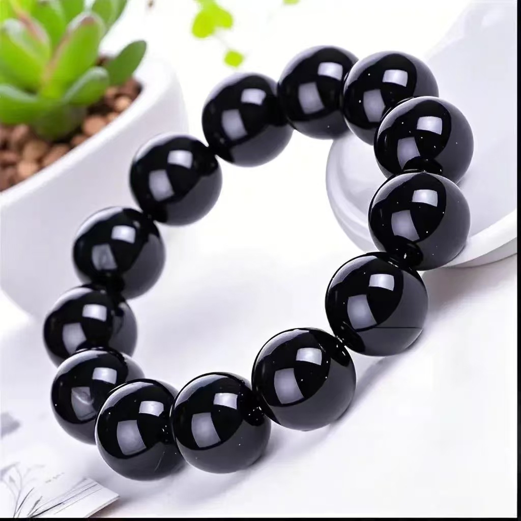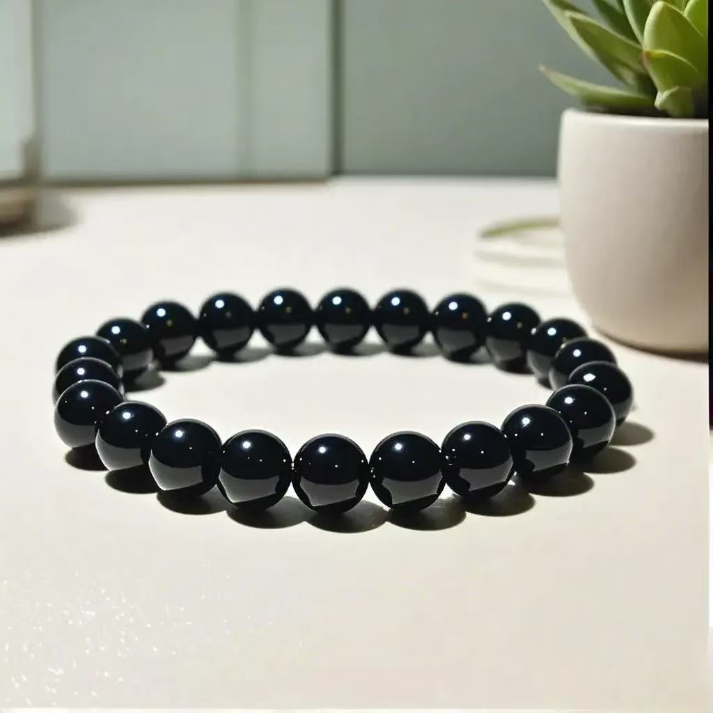 爆款仿黑曜石男女单圈手链时尚简约男女玻璃念珠手串直播人气饰品