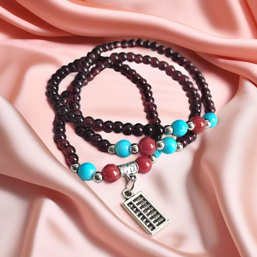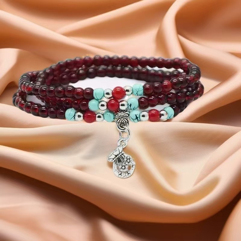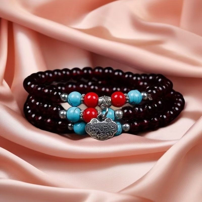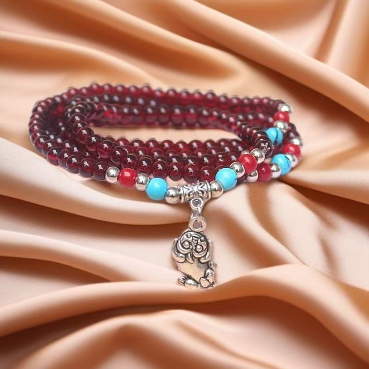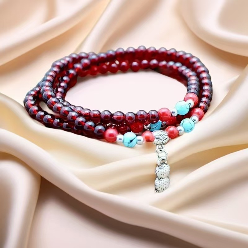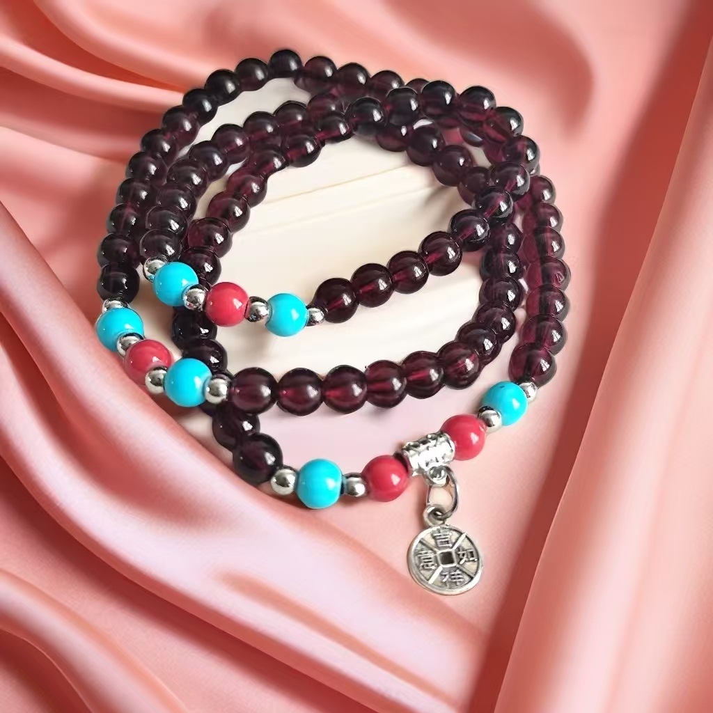 6mm仿石榴石三圈手链 男女情侣佛珠单圈多圈手串景区庙会地摊货源 投诉