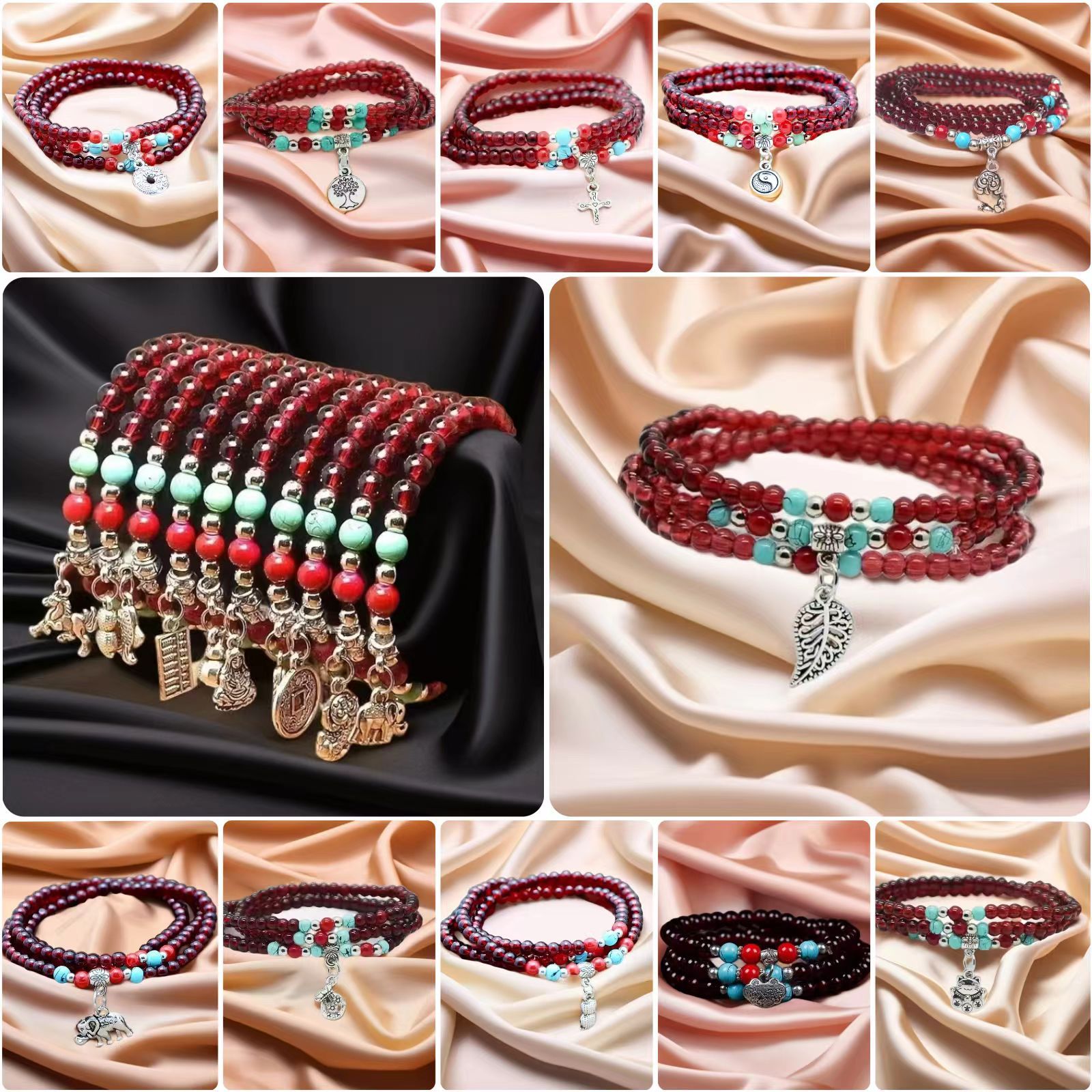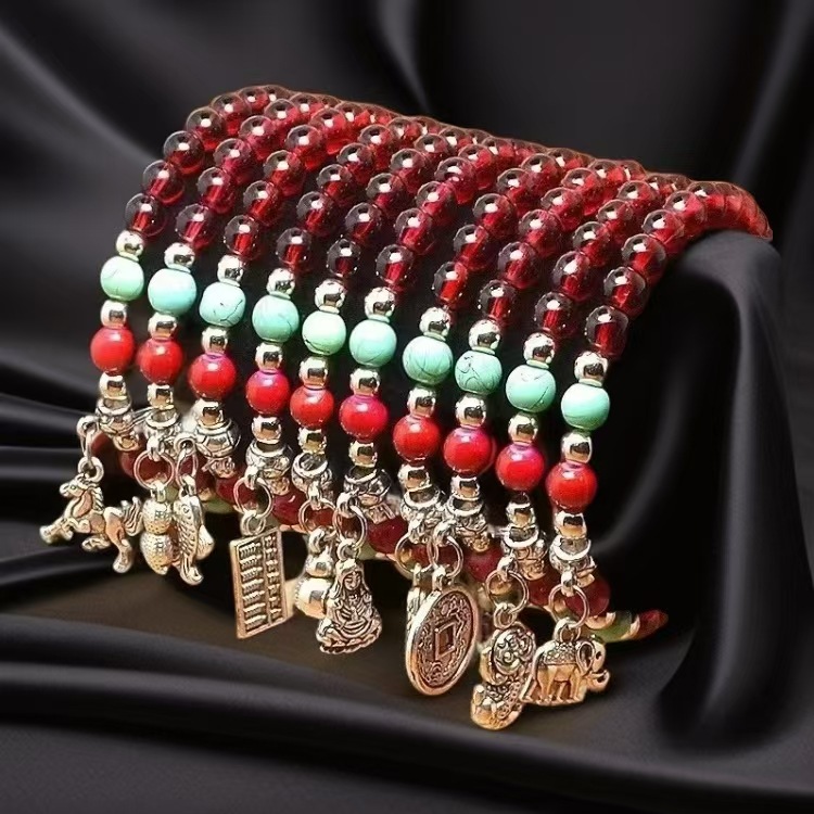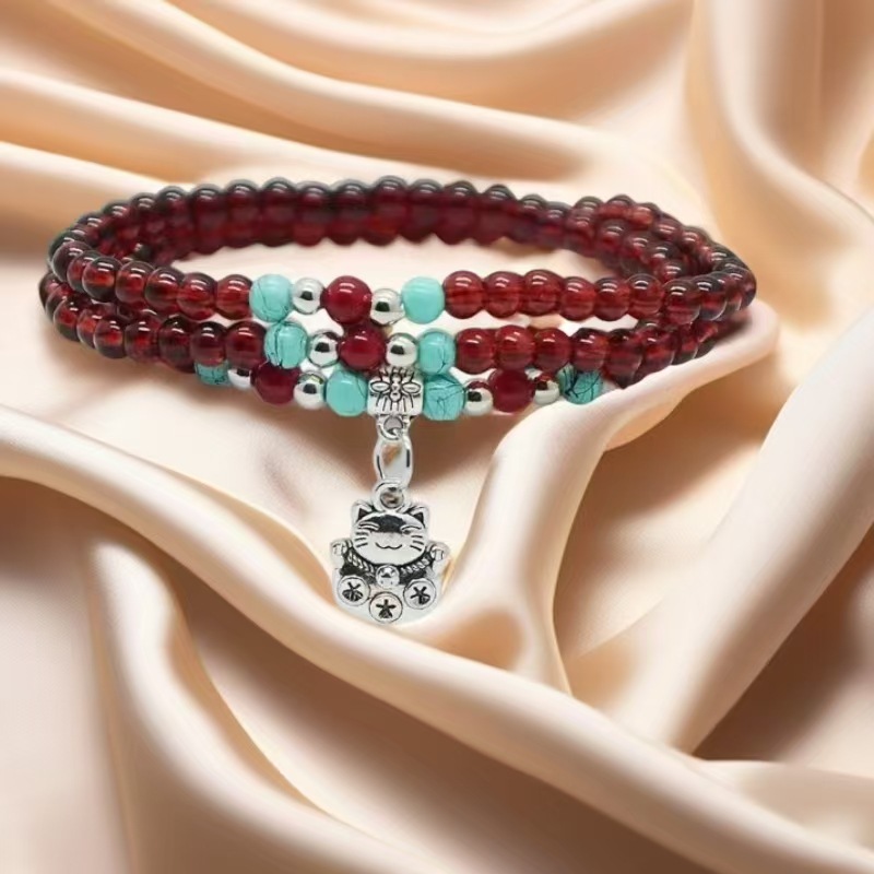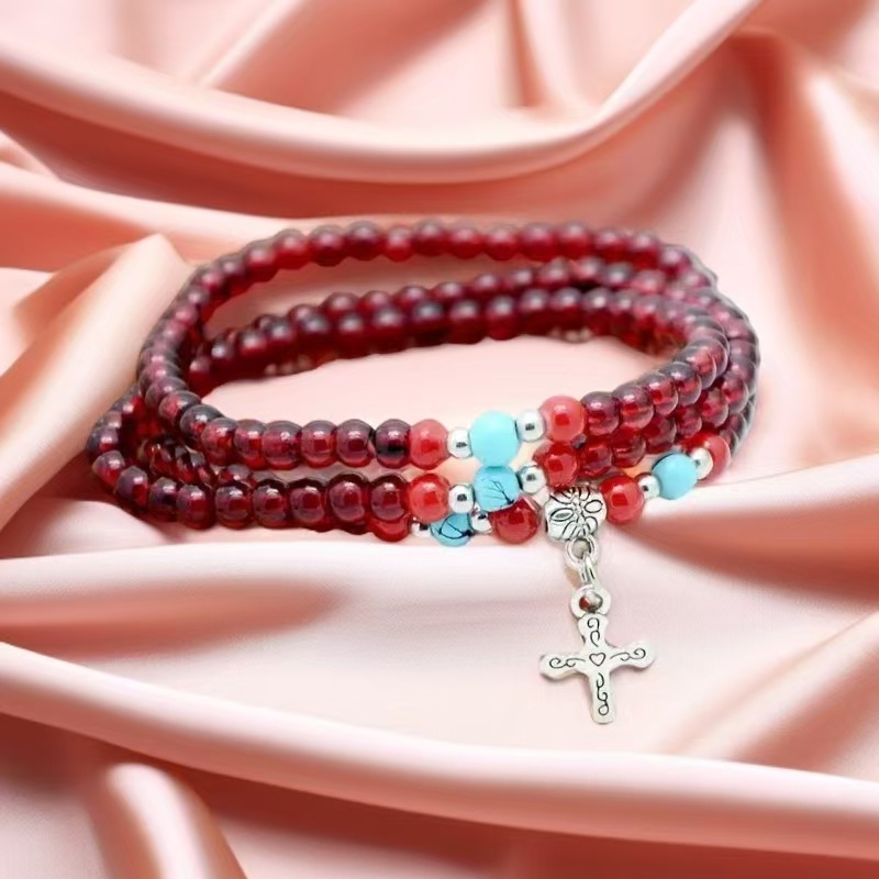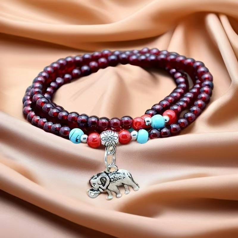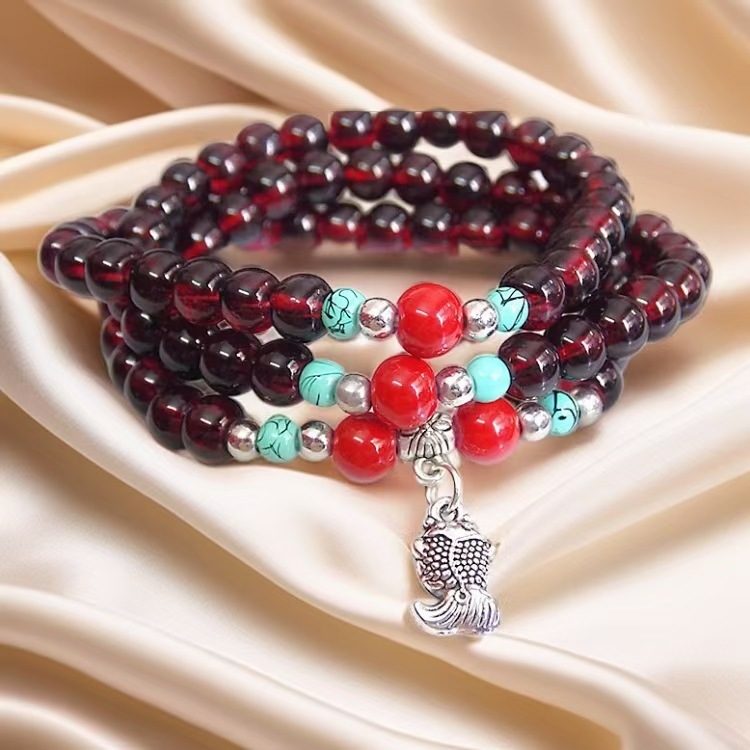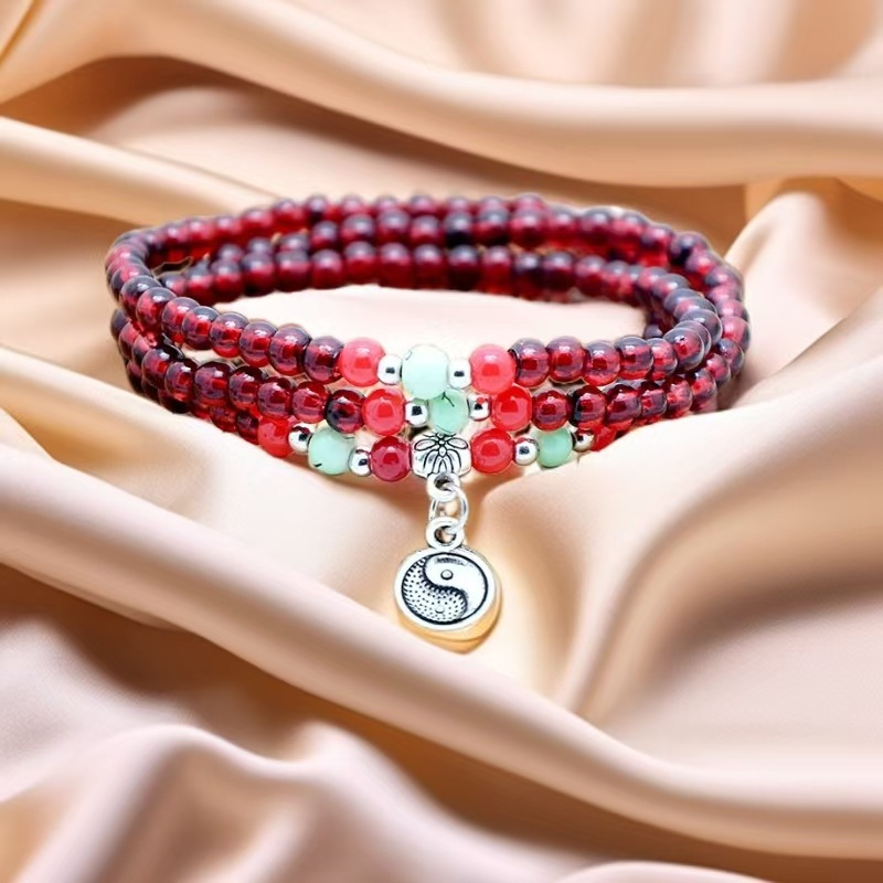 6mm仿石榴石三圈手链 男女情侣佛珠单圈多圈手串景区庙会地摊货源 投诉