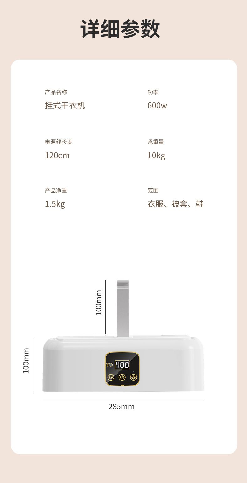 装箱清单:干衣机x1/干衣罩X1/遥控器X1/说明书x1