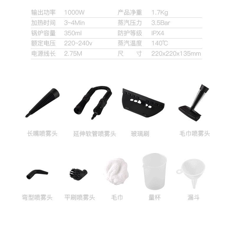 蒸汽清洗机颜色:黄色箱规:45*43.5*48 8个装/ 13.8㎏ 66.5*43.5*48 12个装/20.5㎏彩盒:21.5*21.5*23.5㎝重量:1590g