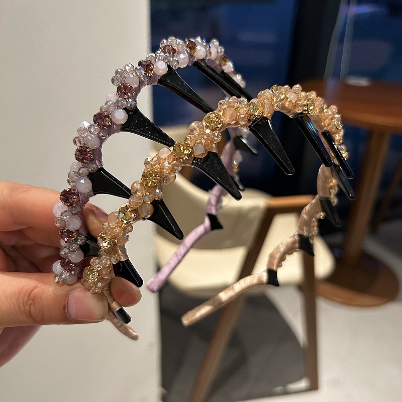 精致手工款亮晶晶水晶发箍法式重工带齿防滑头箍洋气发卡压发女 English | 投诉