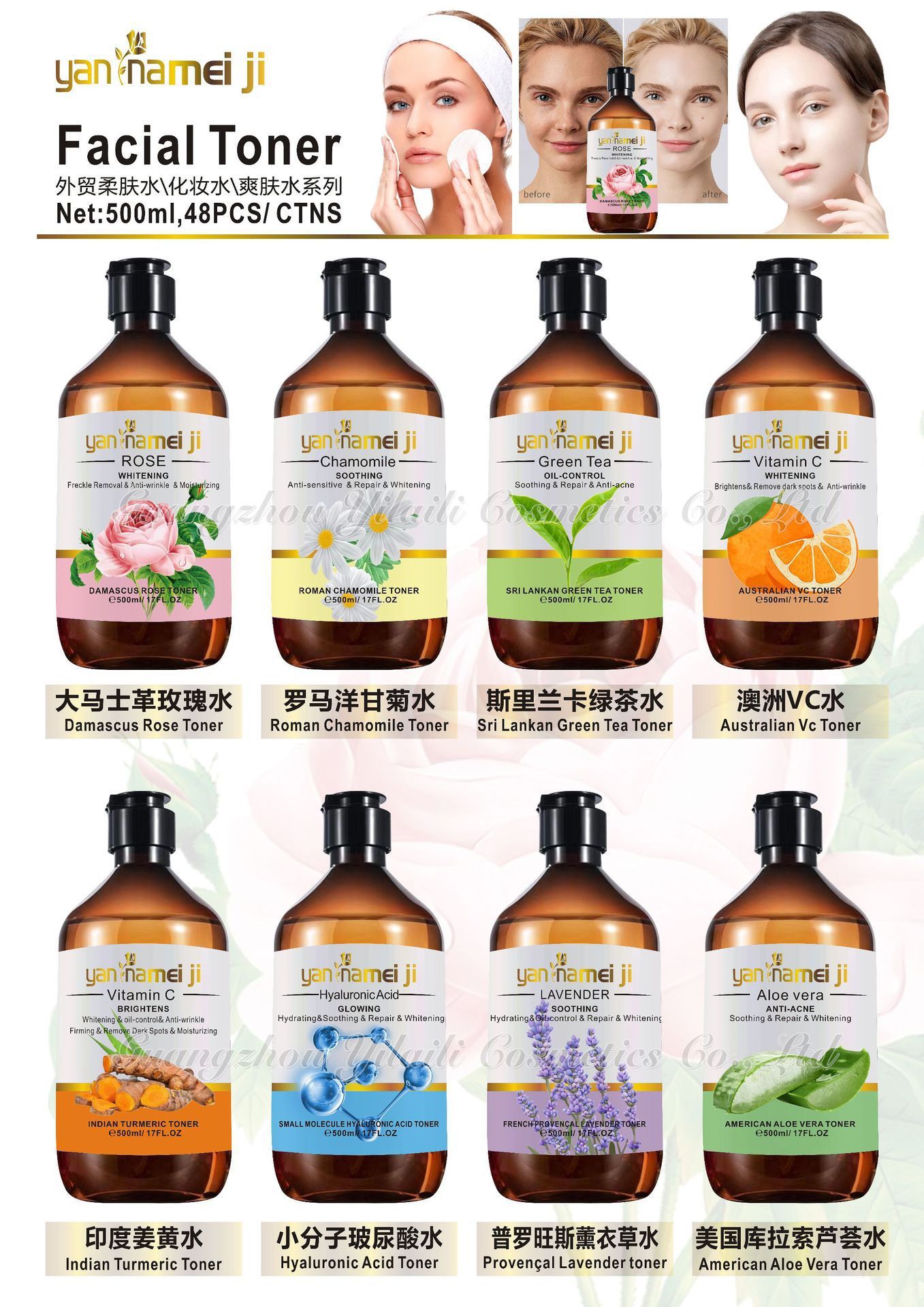 产品名称 500ml爽肤水 品牌:yannameiji
