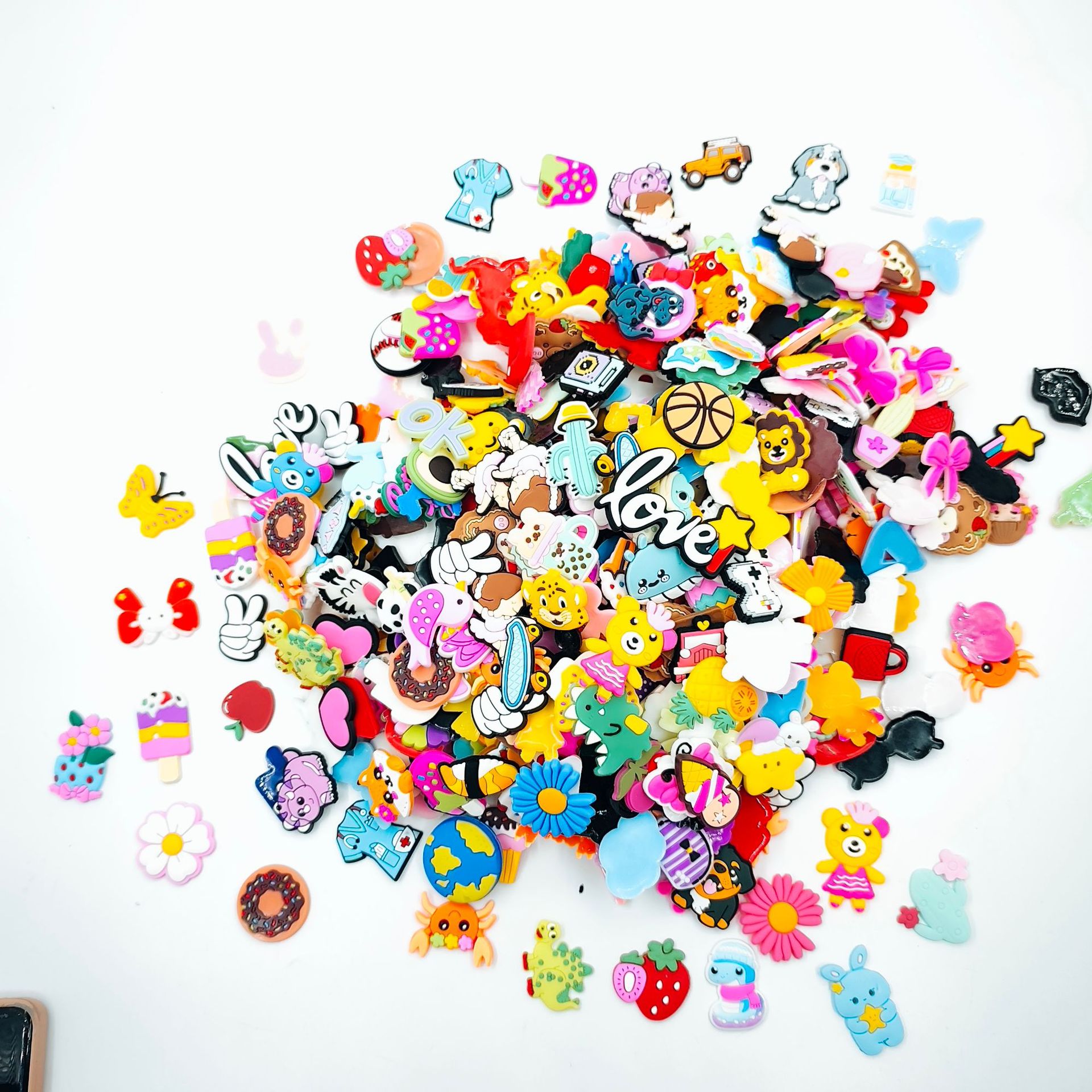 适合鞋型: 凉鞋,拖鞋 品牌: 国产 样式: 鞋扣 型号: 混合款 风格: 卡通乐园 适合季节: 夏季,春季,秋季 颜色: 混款随机100款不重样,蛋糕鞋扣,水果鞋 货号: X002 重量: 0.005 kg/个