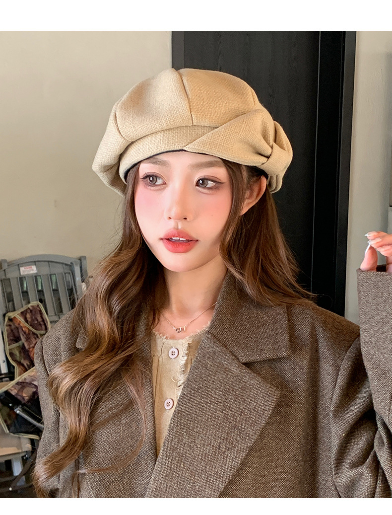 2024韩版秋冬新款帽子女蝴蝶结小众人群贝雷帽气质显脸小画家帽潮