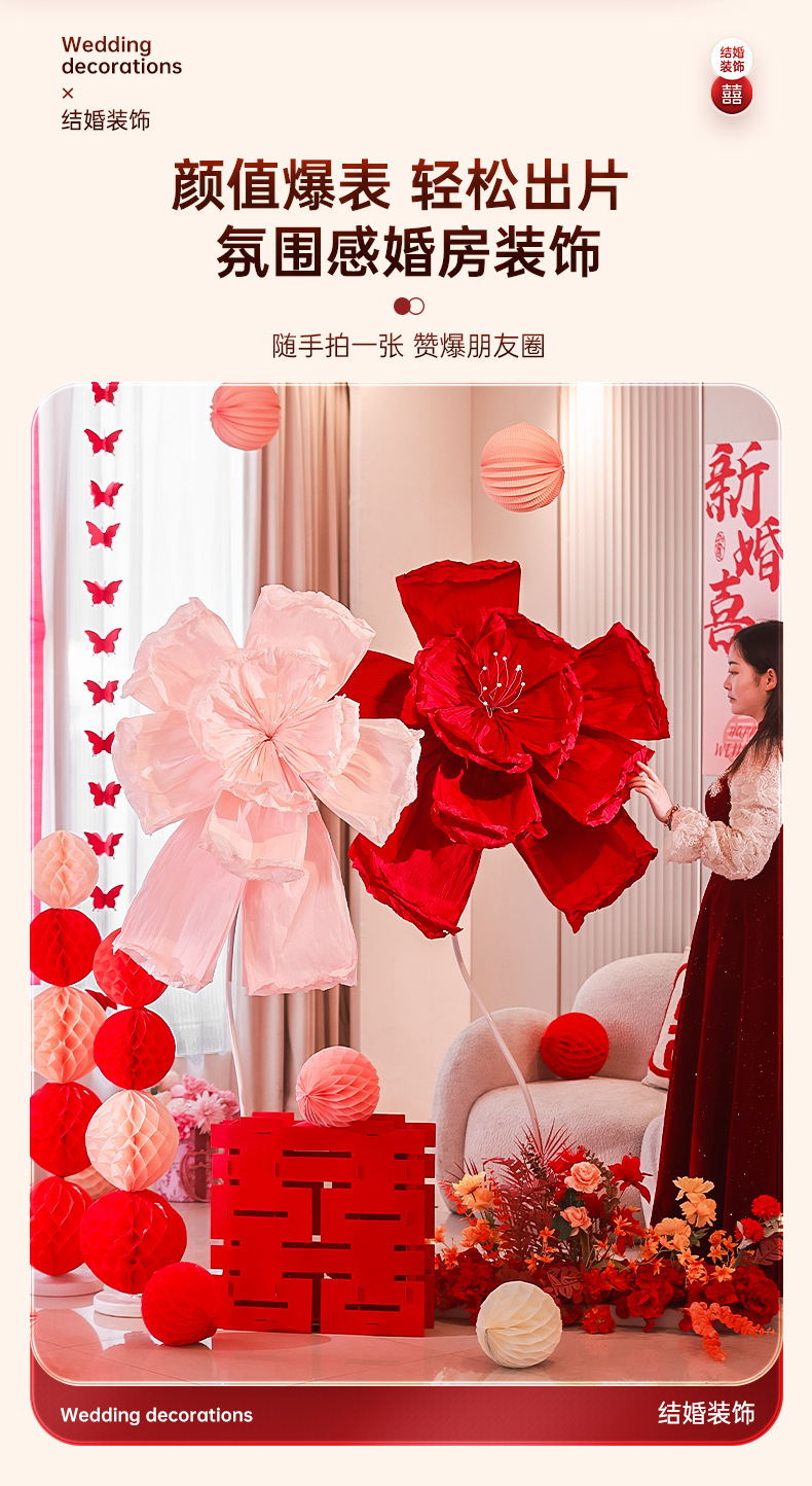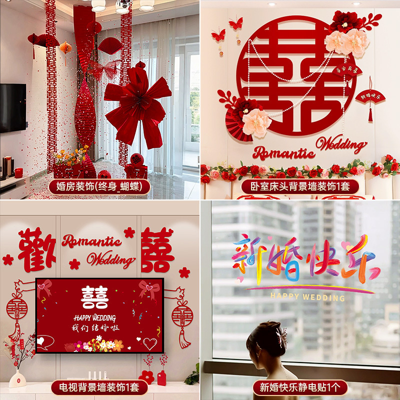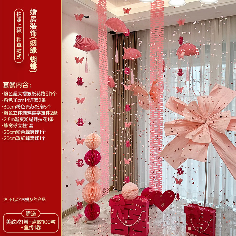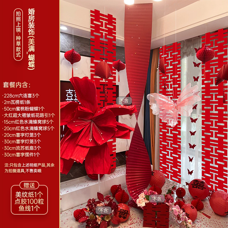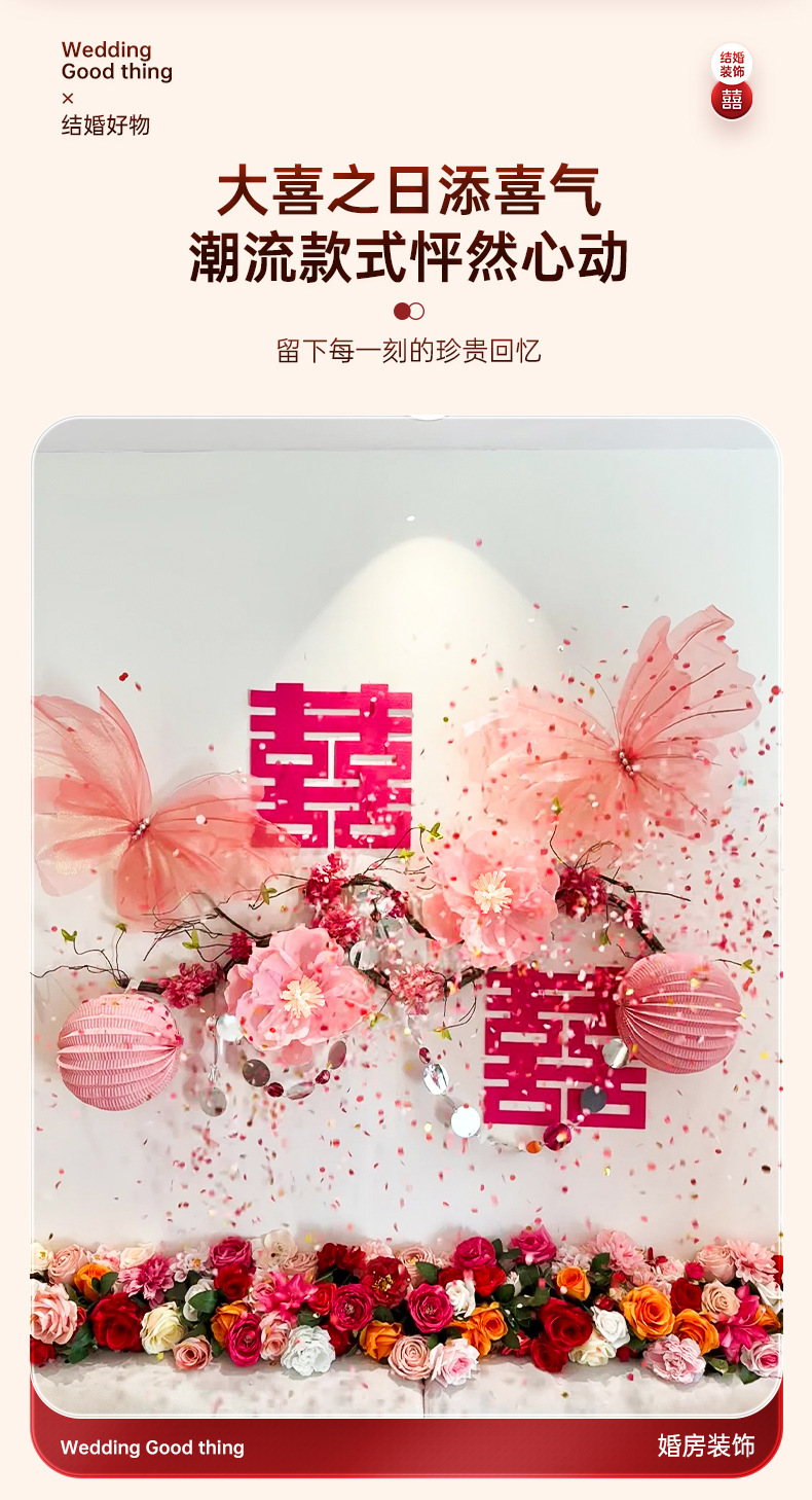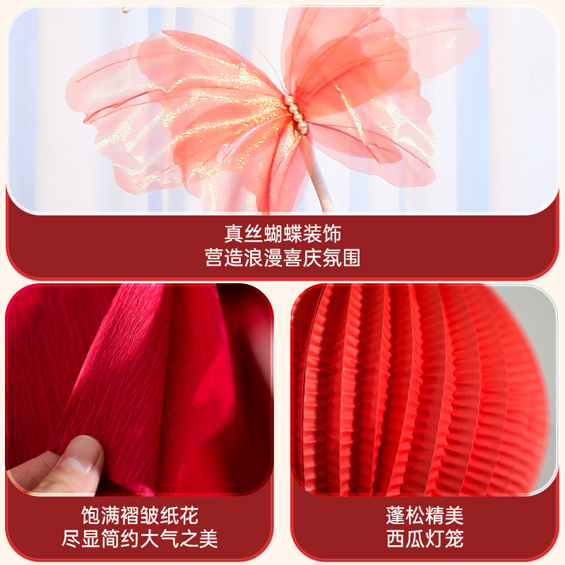 结婚长条喜字拉花婚房布置套装婚礼新房卧室客厅窗帘立体蝴蝶挂件婚房布置套装装饰结婚礼立体蝴蝶窗帘挂件卧室新房拉花长条喜批发
