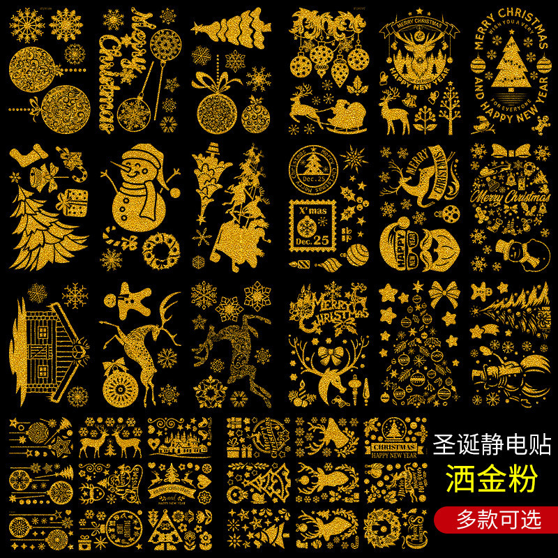 圣诞节装饰品圣诞老人树静电玻璃门贴纸场景布置造景窗花橱窗贴画