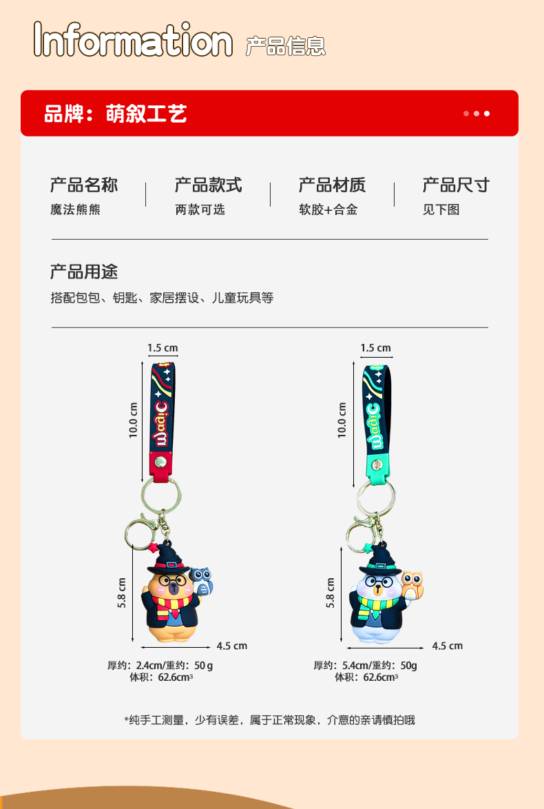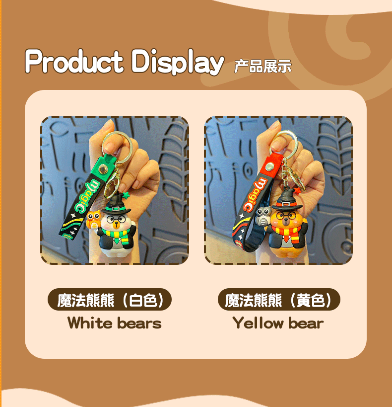 材质: PVC 钥匙配饰分类: 钥匙扣 品牌: 萌叙 风格: 可爱风 货号: MX-80900 颜色: 魔法熊熊【黄色】,魔法熊熊【白色】 是否IP授权: 否 是否属于礼品: 是,商务礼品 是否专利货源: 否 重量: 0.273 kg/个