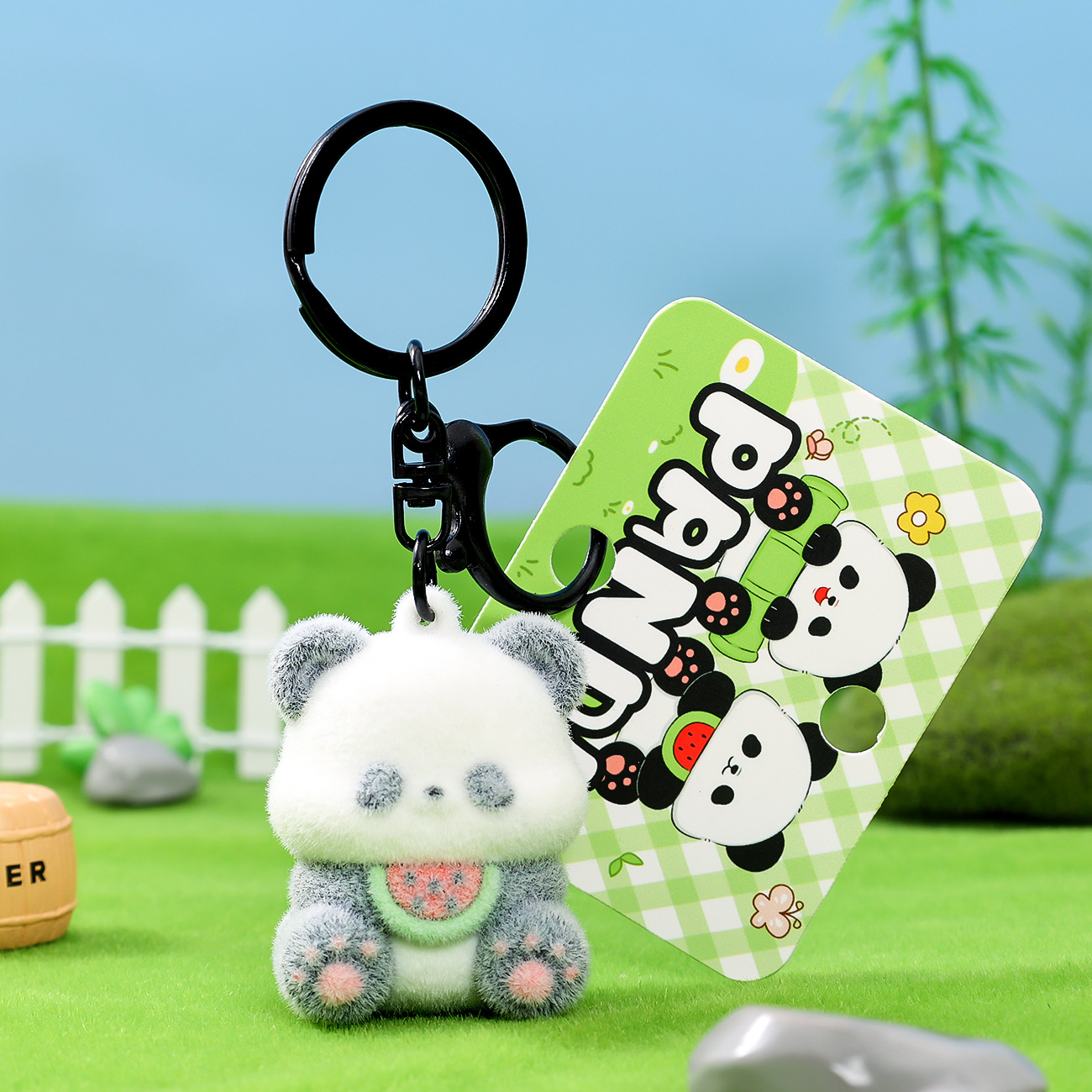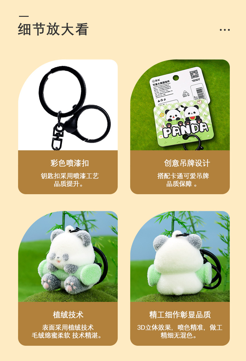 植绒国宝大熊猫钥匙扣小挂件精致植绒公仔包包挂饰创意小礼品批发 English | 投诉