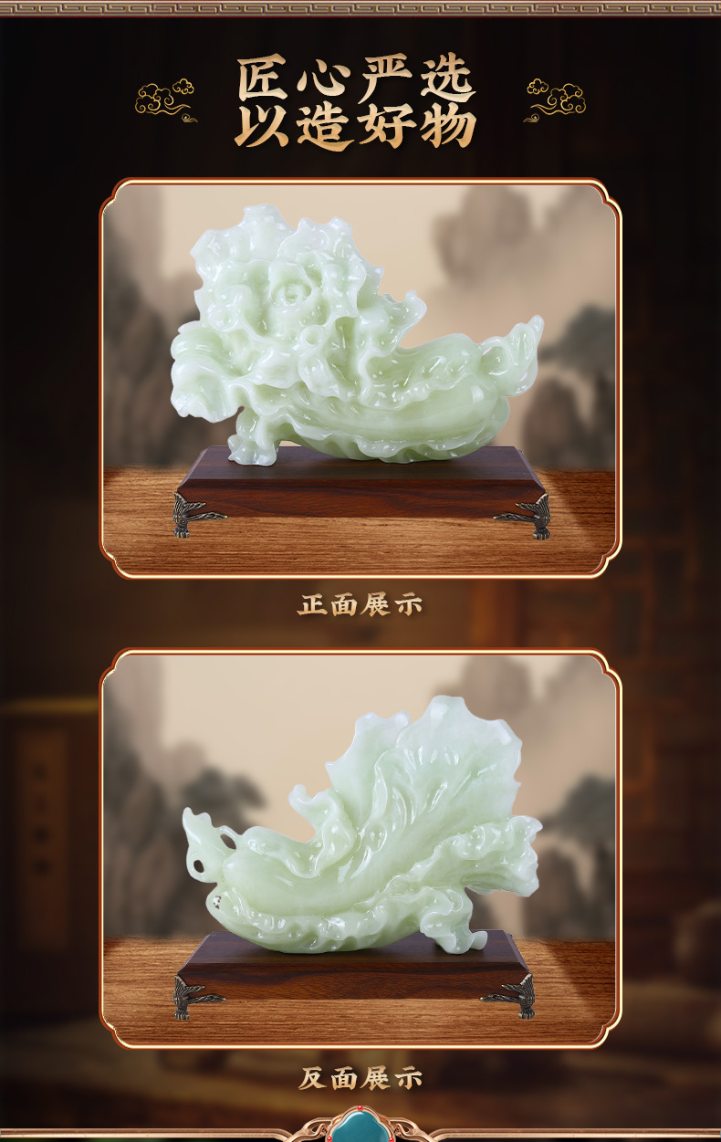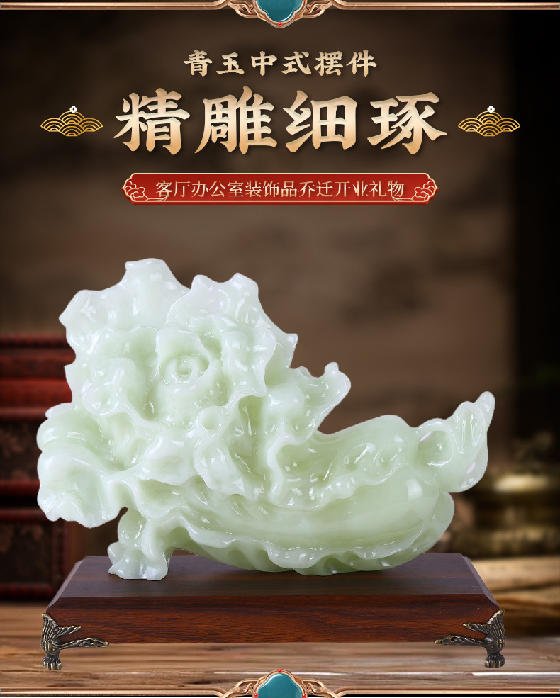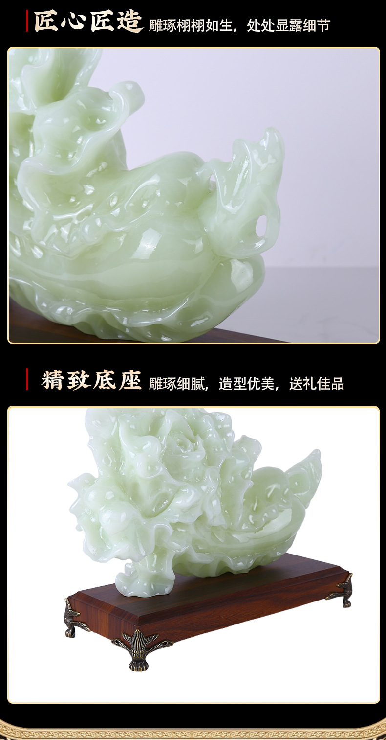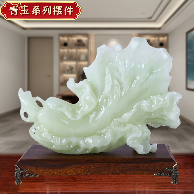 新款翠玉白菜摆件乔迁开业礼物玄关酒柜装饰摆设琉璃青玉白菜摆件 English | 投诉