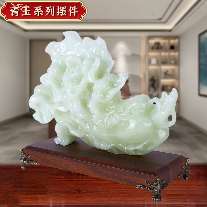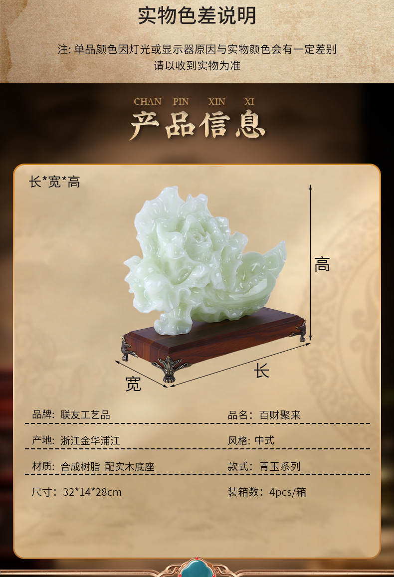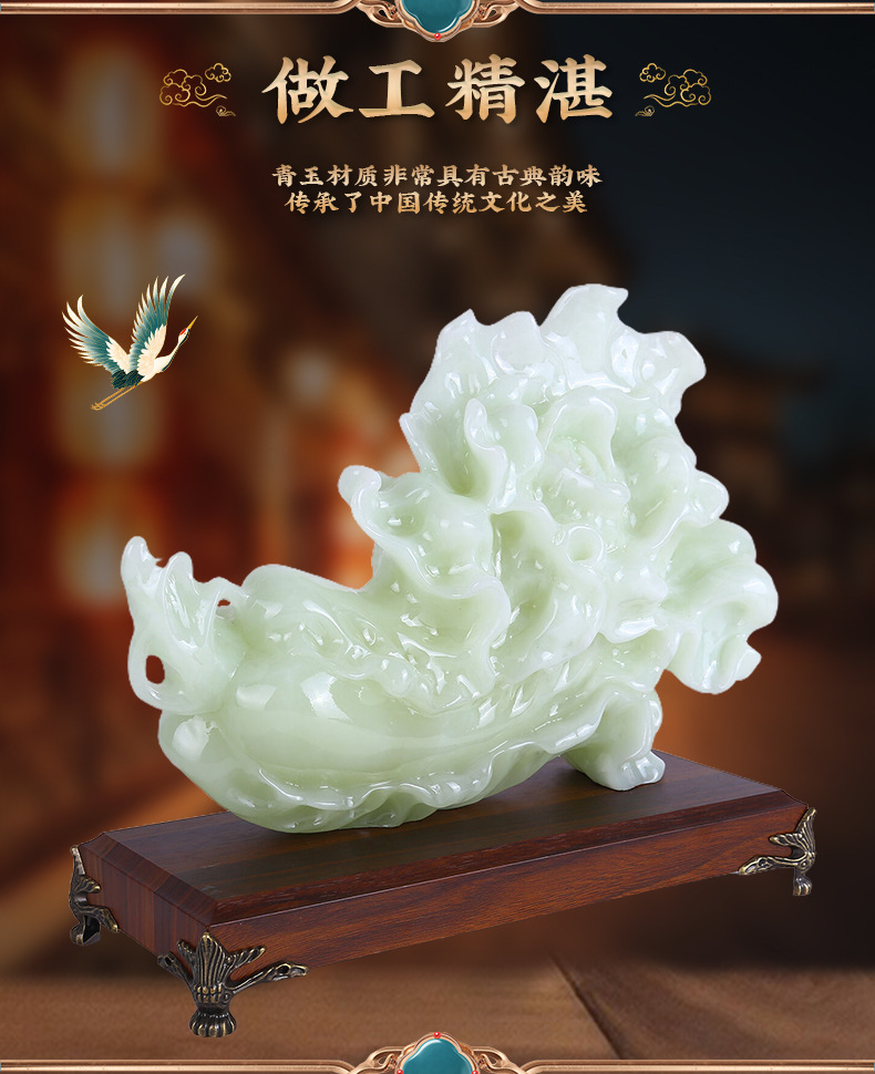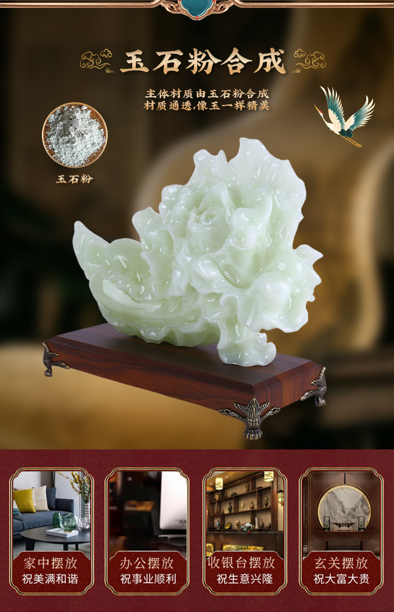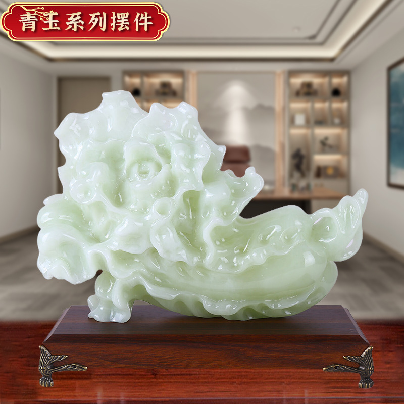 新款翠玉白菜摆件乔迁开业礼物玄关酒柜装饰摆设琉璃青玉白菜摆件 English | 投诉